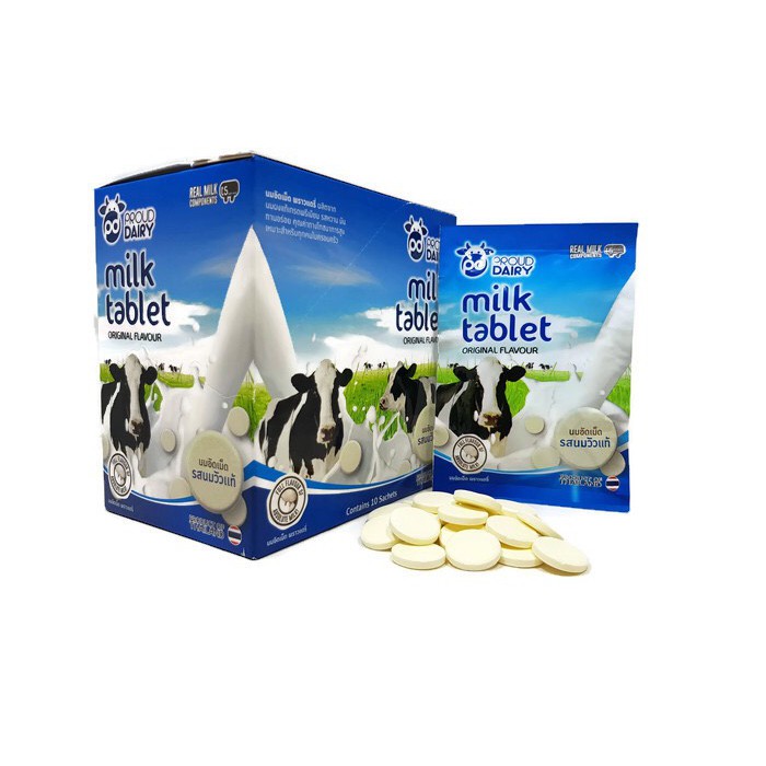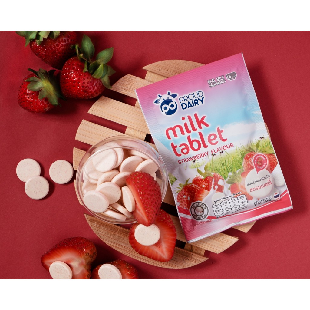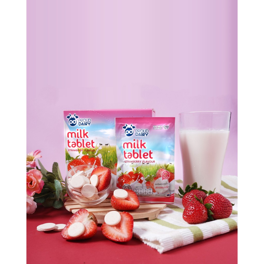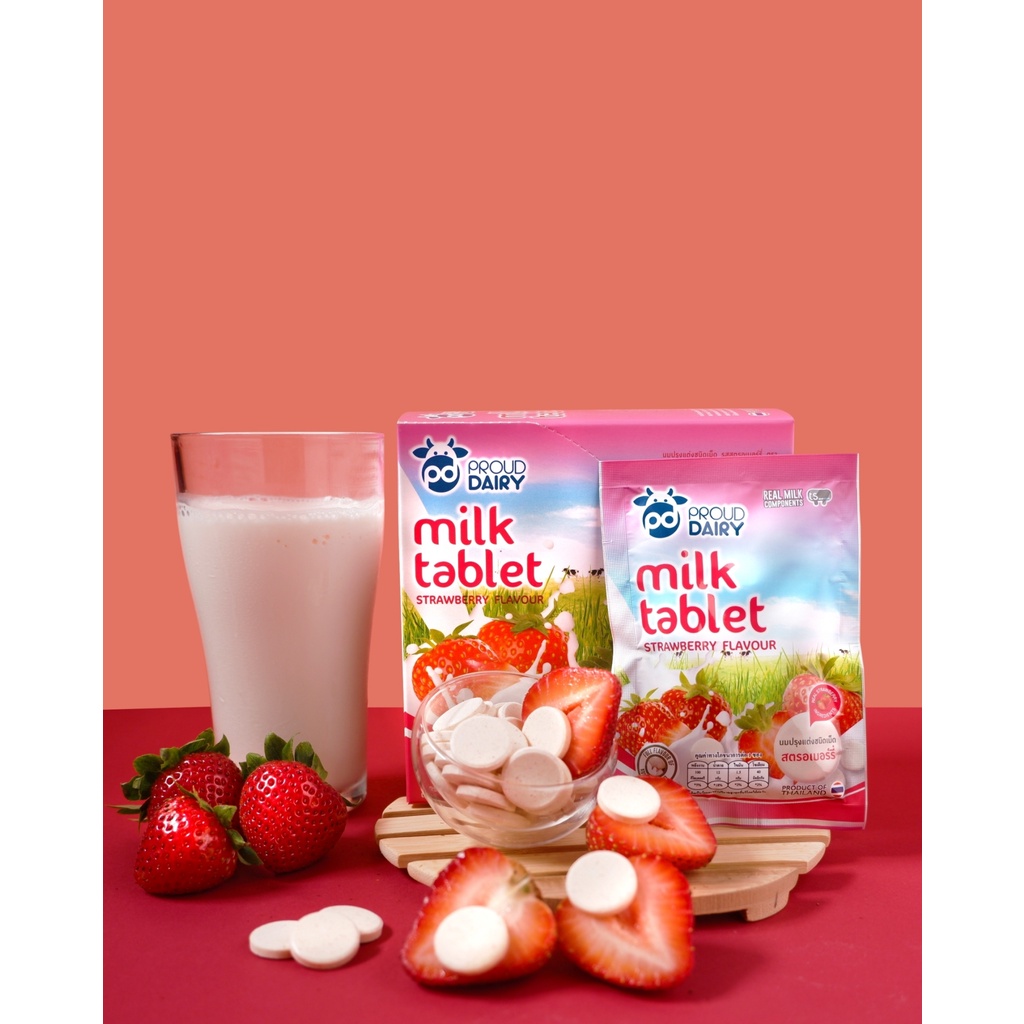 [10 ซอง] พราวแดรี่ นมปรุงแต่งอัดเม็ด รสหวาน ช็อคโกแลต สตรอเบอร์รี่ กล่องละ 10 ซอง * 25 กรัม