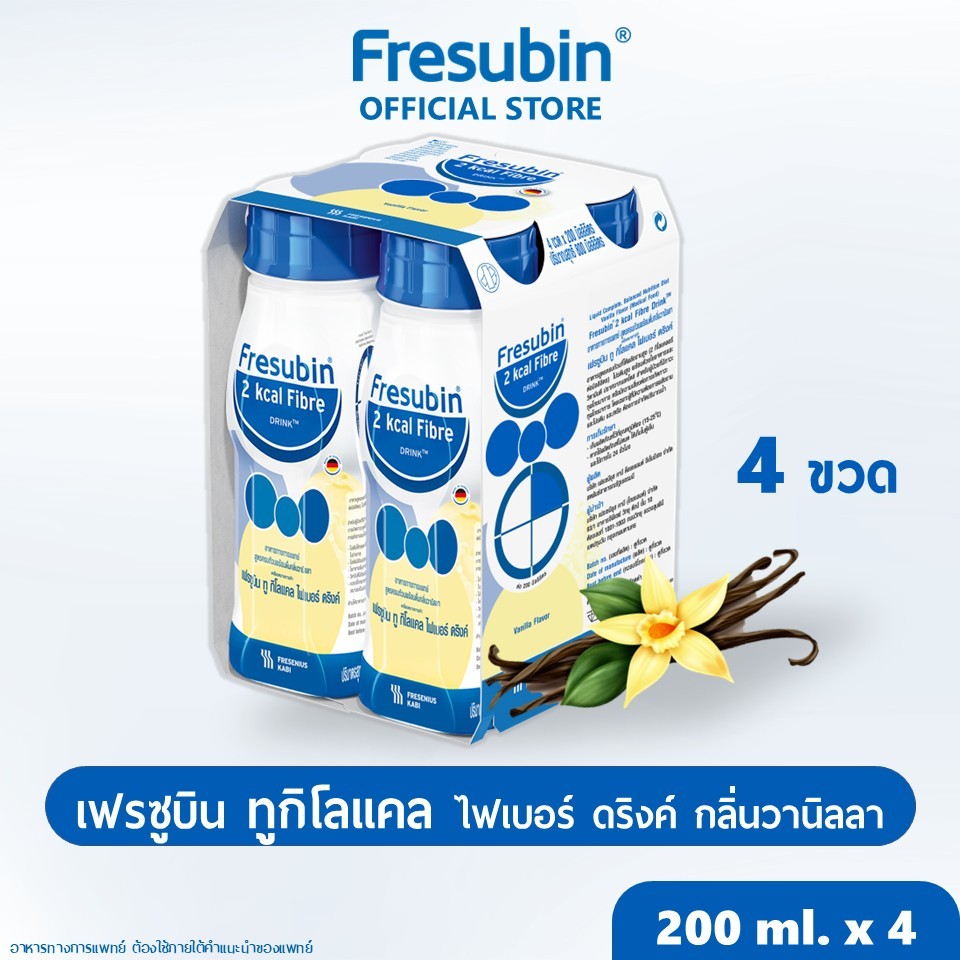 Fresubin 2kcal เฟรซูบิน ทูกิโลแคล อาหารสูตรครบถ้วน กลิ่นวานิลลา 200 ml x 4 ขวด [EXP.10/2026]