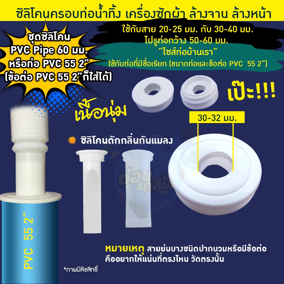 Saun Glin กันกลิ่น กันแมลง สำหรับเครื่องซักผ้า อ่างล้างจาน ไปท่อรูใน 50-60มม.