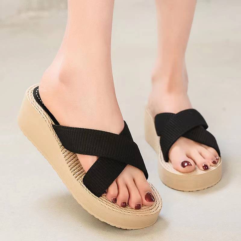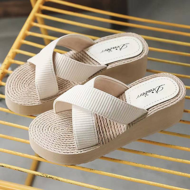 รองเท้าแตะแบบสวม แฟชั่นเกาหลี ส้นตึก สายคาดผ้า 'สินค้าใหม่ น่ารักมากๆ X99