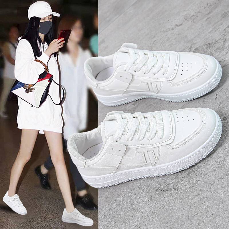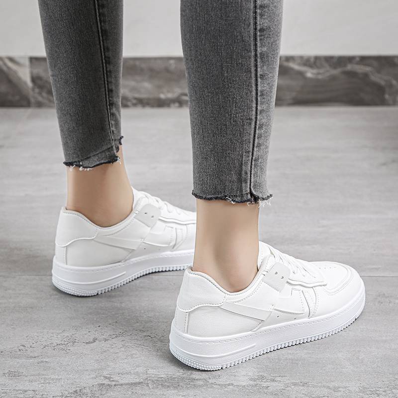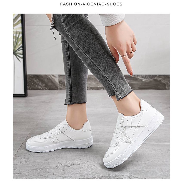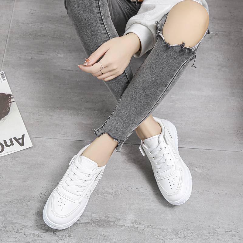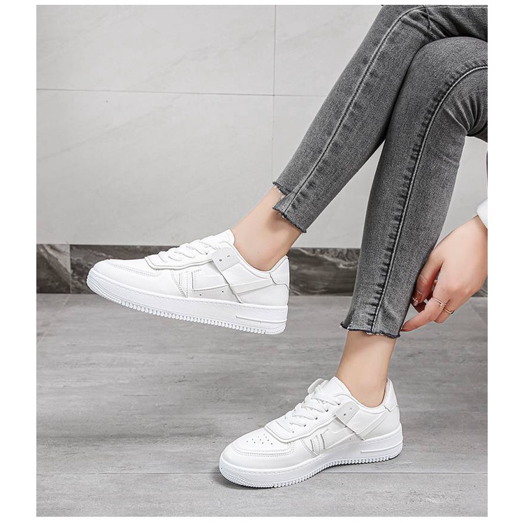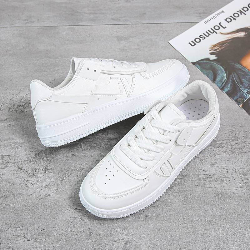 รองเท้าผ้าใบ รองเท้าผ้าใบแฟชั่น หนังเทียม สีขาว น้ำหนักเบา สวมใส่สบาย ดีไซน์เก๋ เรียบ ดูดีสุดๆ H559