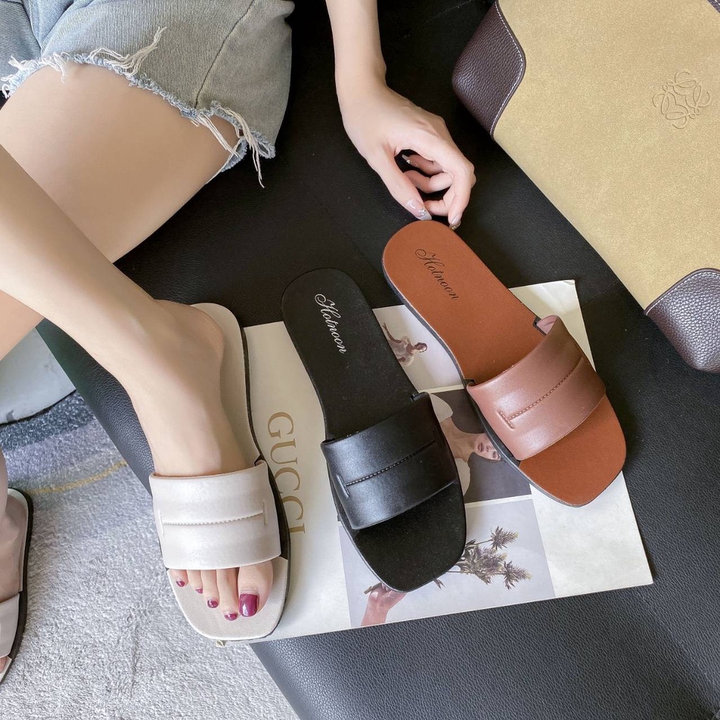 รองเท้าแตะแบบสวม แฟชั่นสไตล์เกาหลี ยางพารา สีเรียบ น้ำหนักเบา T11