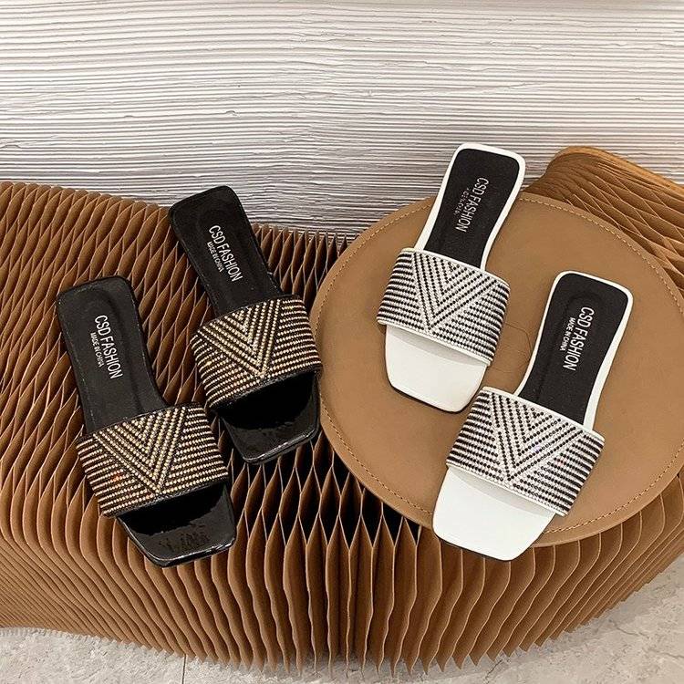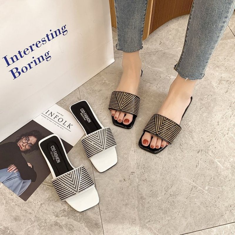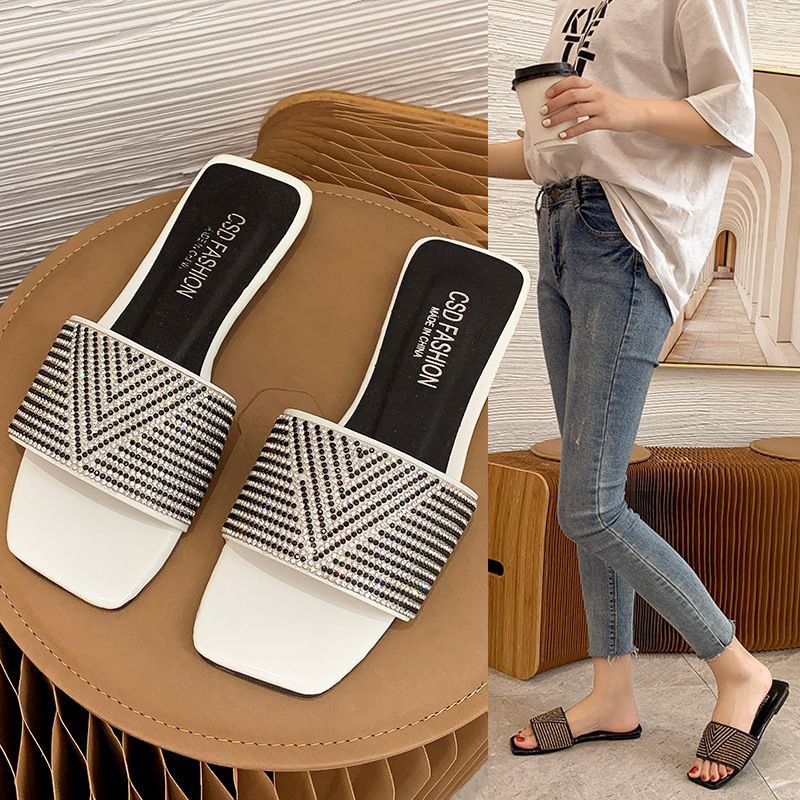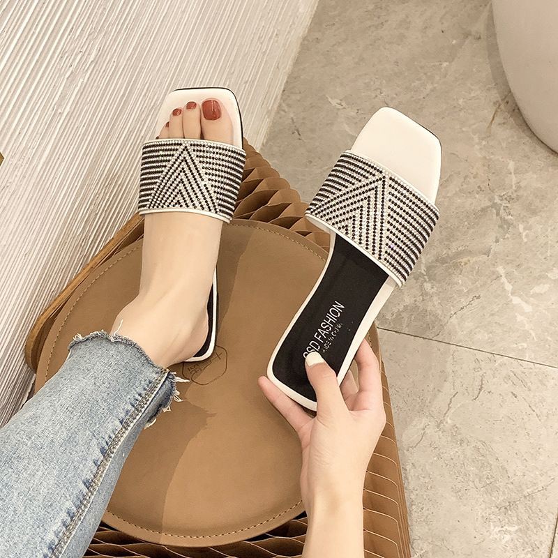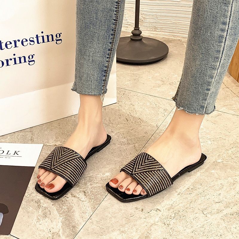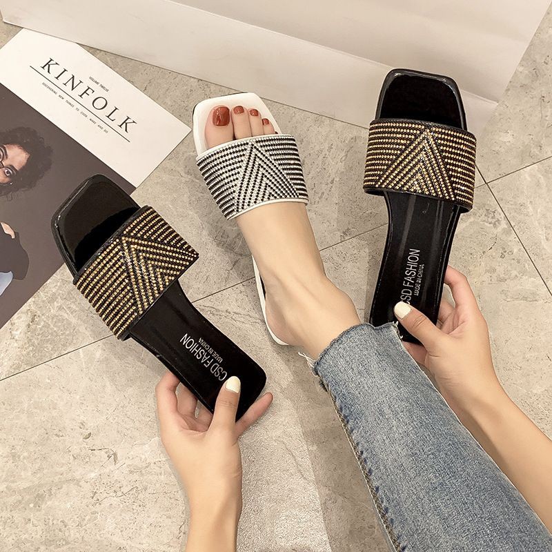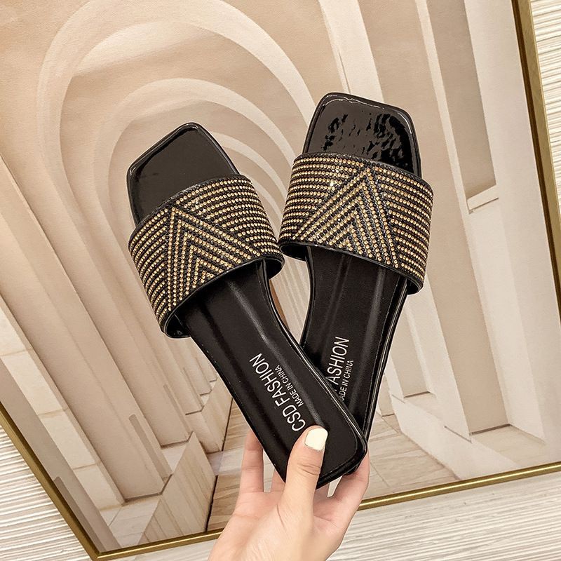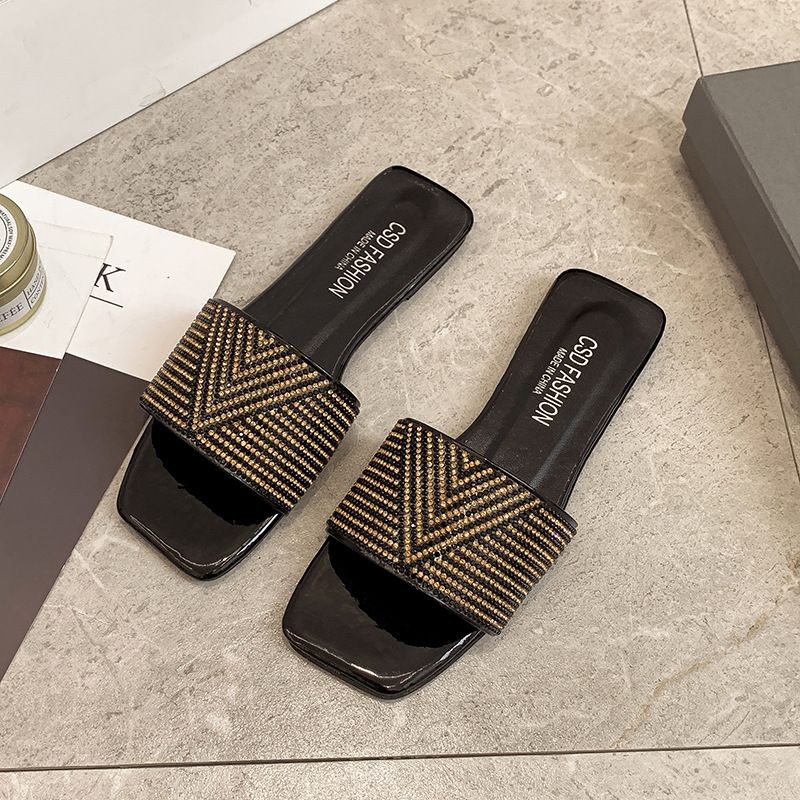 รองเท้าแตะแฟชั่นผู้หญิง ส้นแบน ดีไซด์เกาหลีสายคาดวิบวับ มี 2 สี 2VV