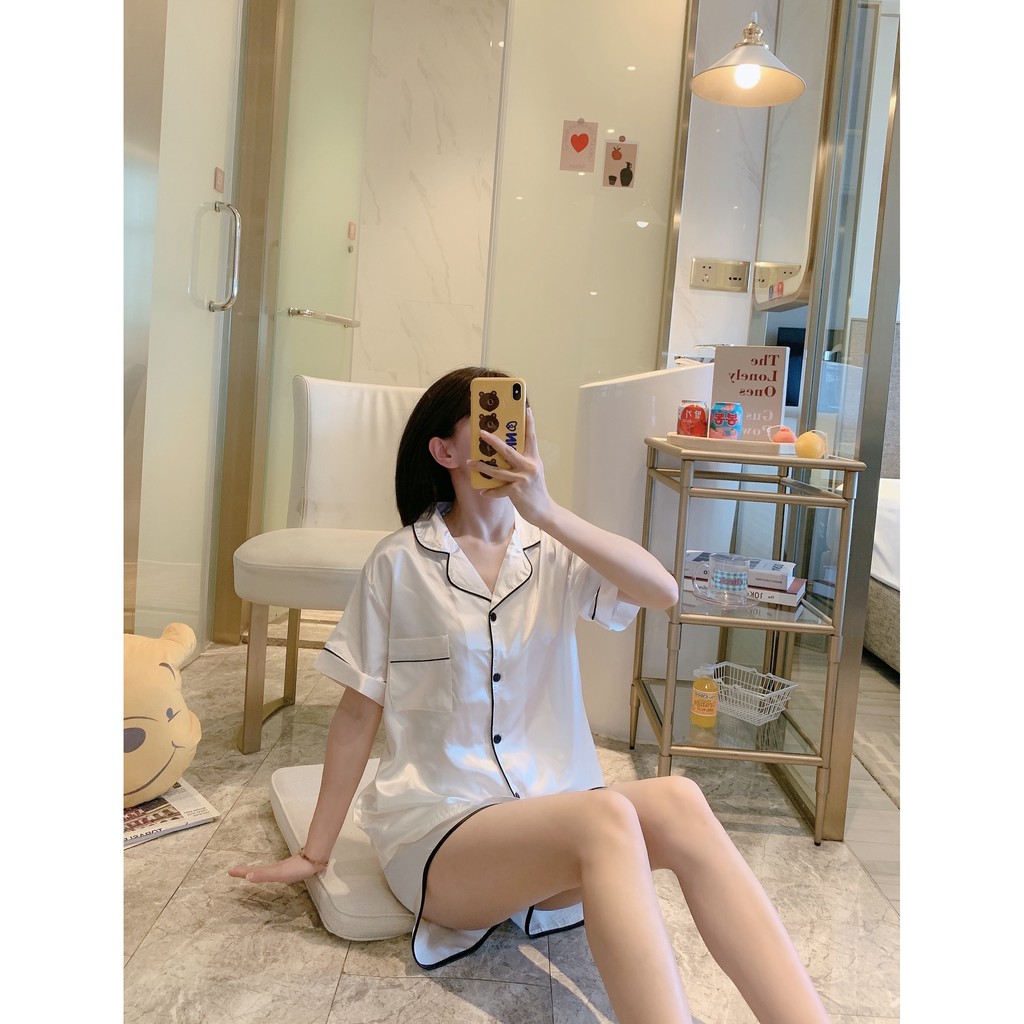 ชุดนอนผ้าซาตินขาเว้าแขนยาว ชุดนอนสวยๆ ชุดนอนเซ็กซี่ S414