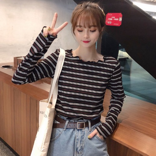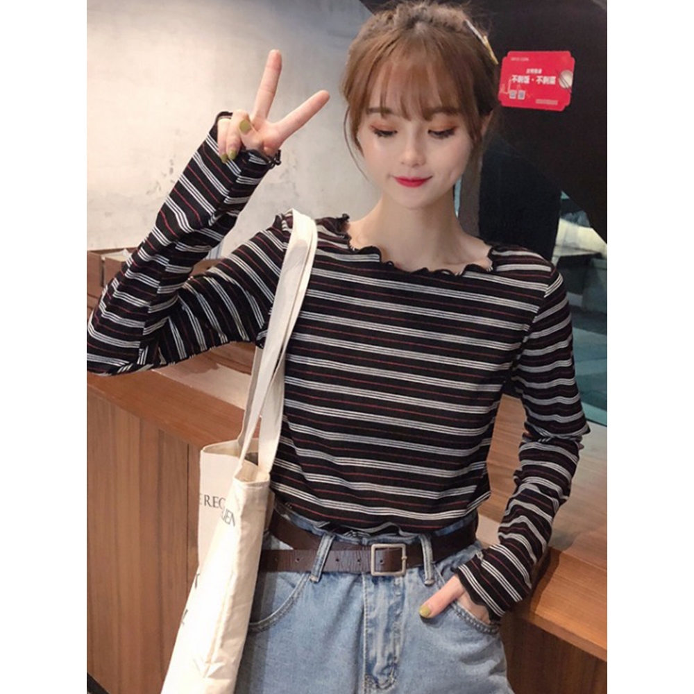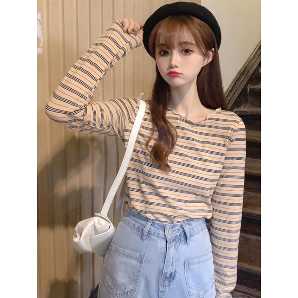 DODO 🍑พร้อมส่ง🍋 เสื้อแขนยาวลายทาง เวอร์ชั่นเกาหลีใส่แล้วน่ารัก (0625)