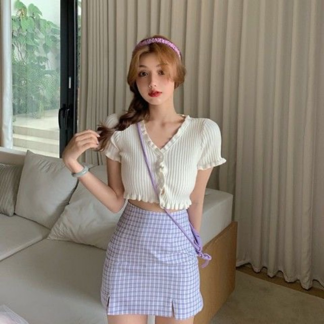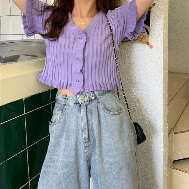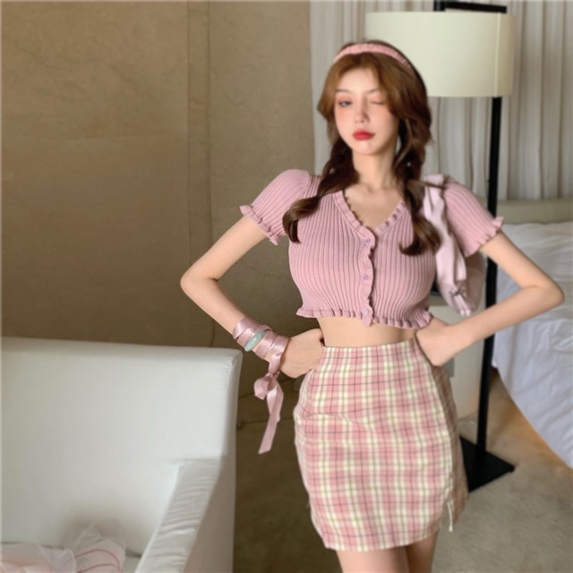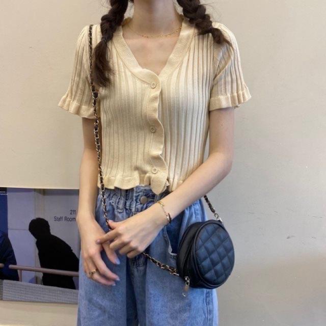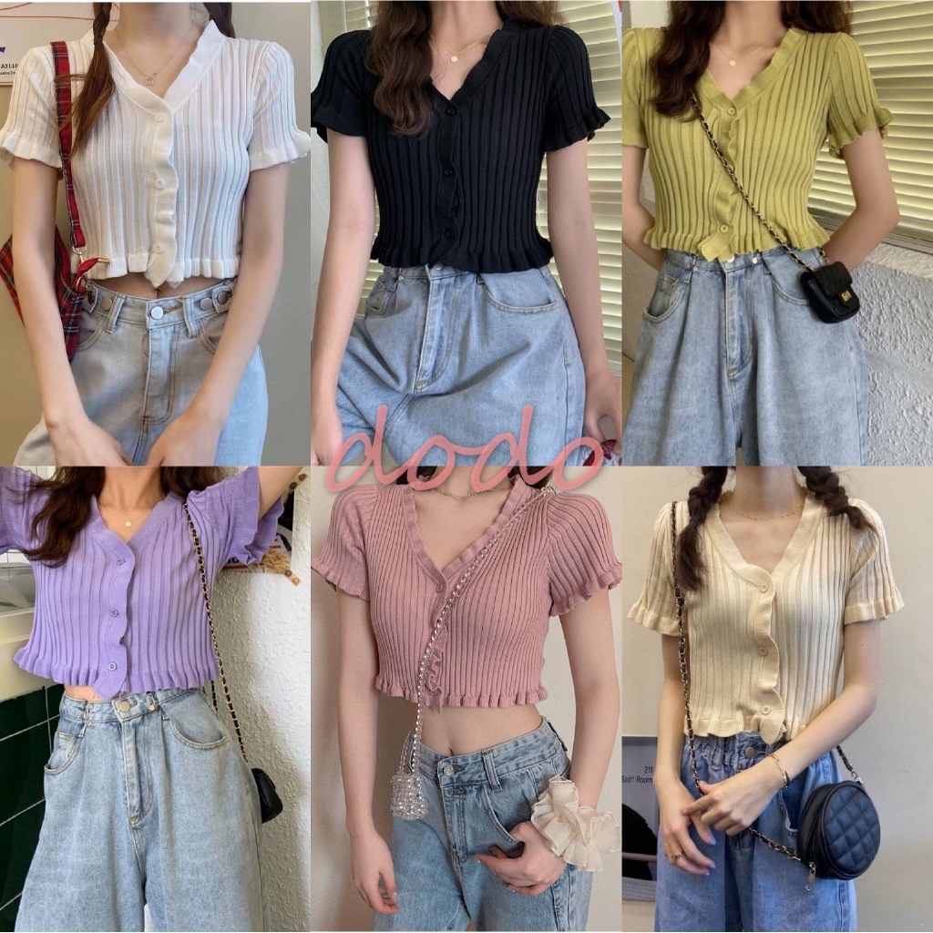 [DODO] คาร์ดิแกนถักคาร์ดิแกนสั้นพร้อมปุ่มตกแต่งด้านหน้า (8249)