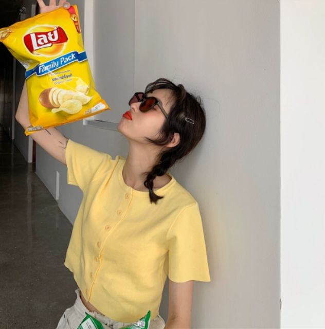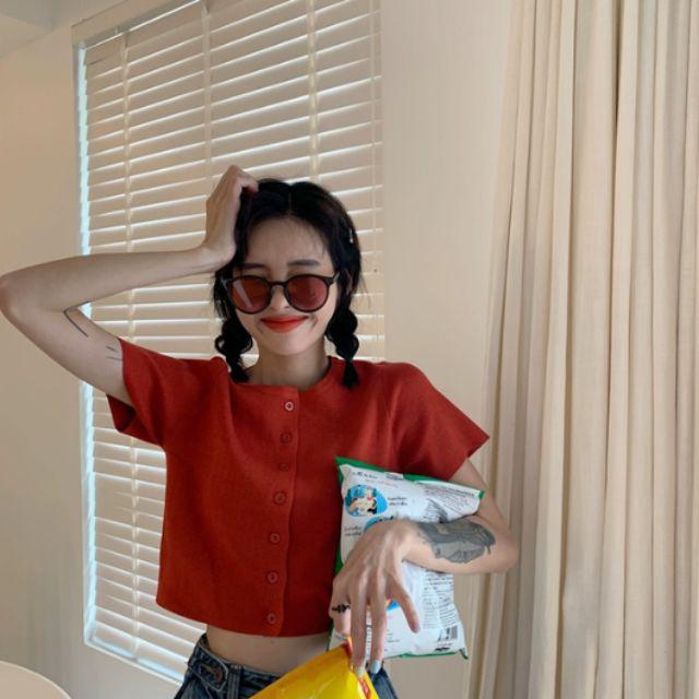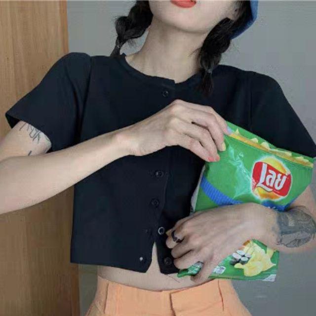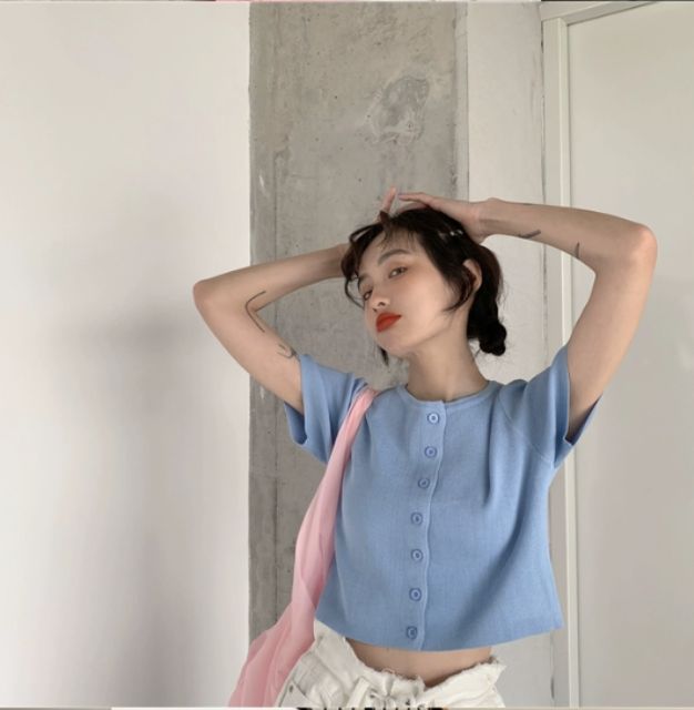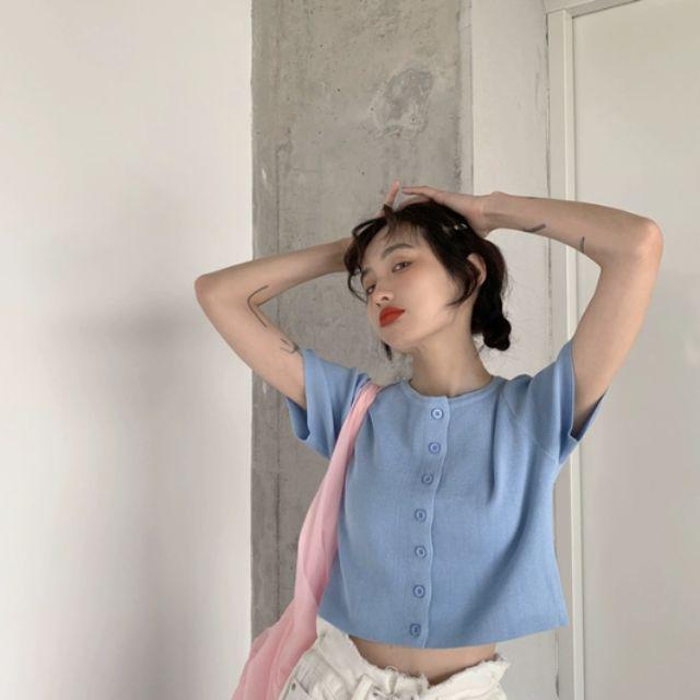 DODO🌟พร้อมส่ง🌟เสื้อไหมพรมแแขนสั้น กระดุมแกะได้ใส่สวย(5203-1)