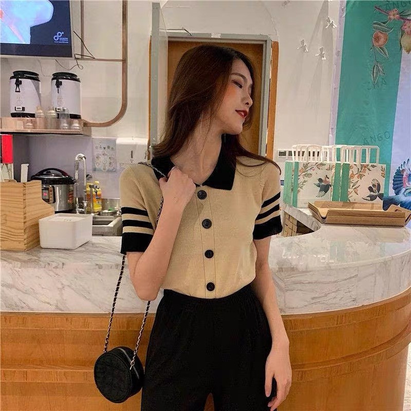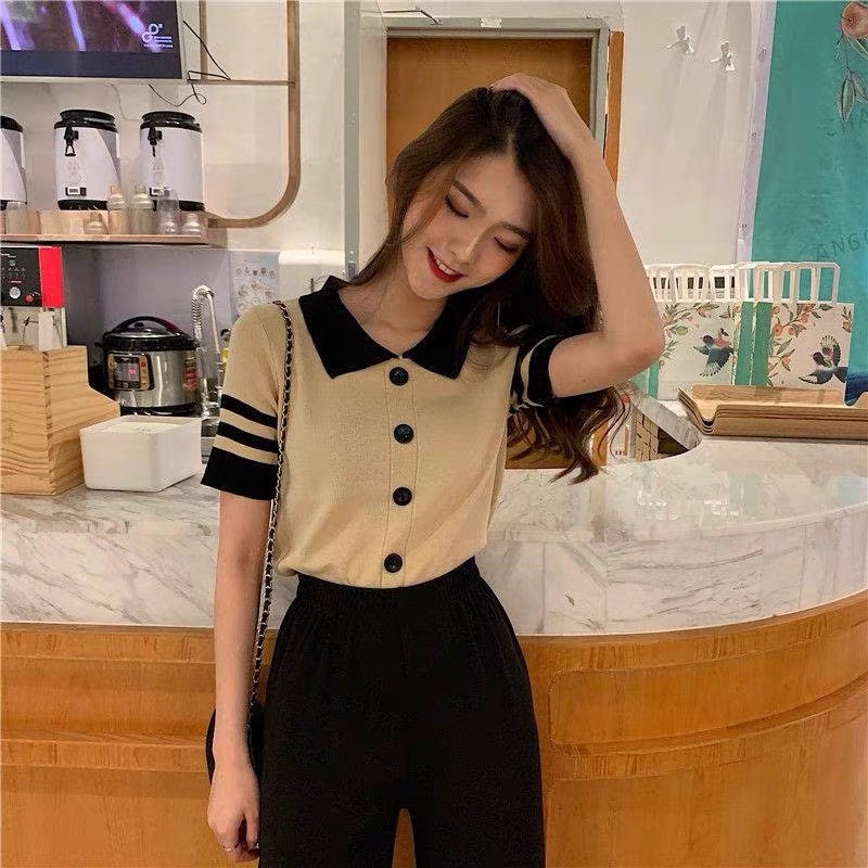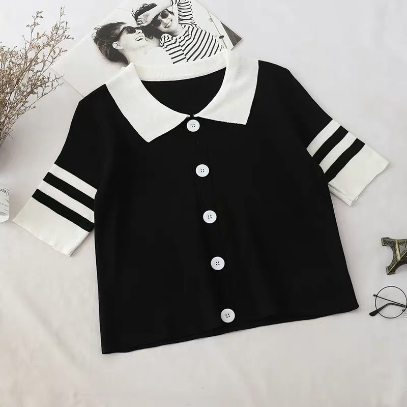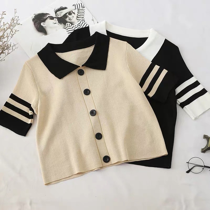 DODO*พร้อมส่ง*เสื้อโปโลถักแขนสั้น (1086)