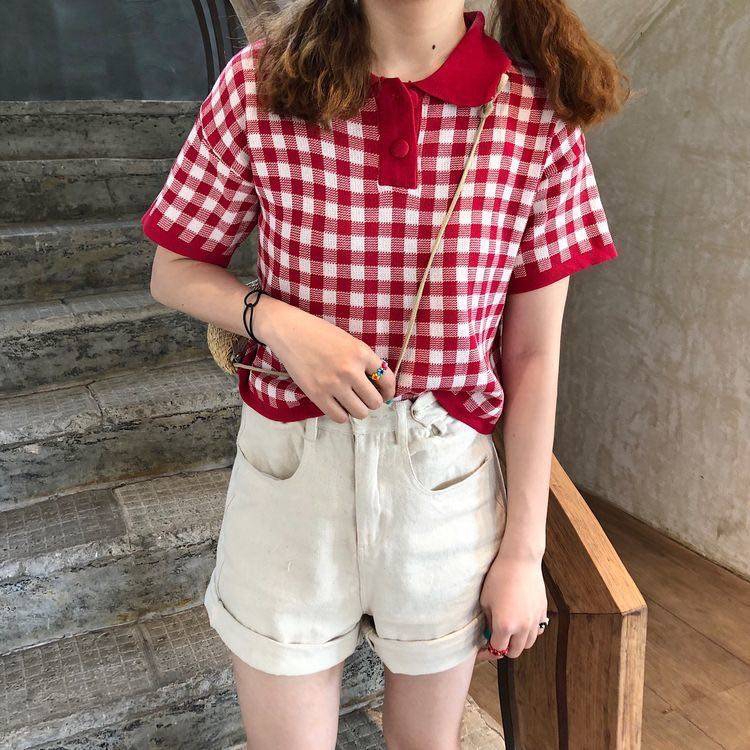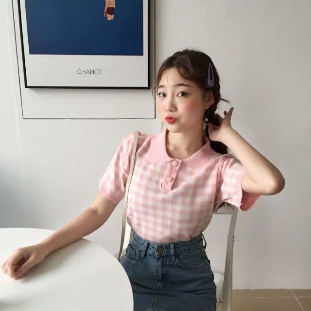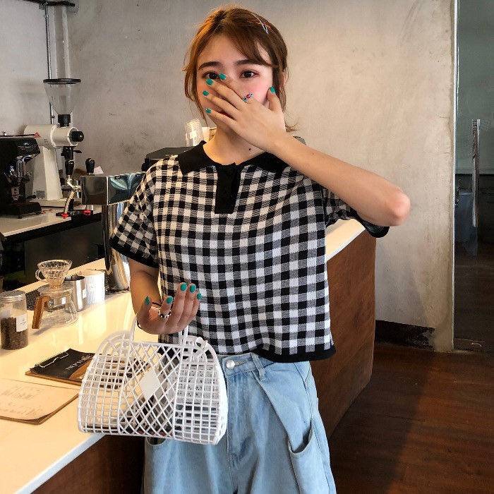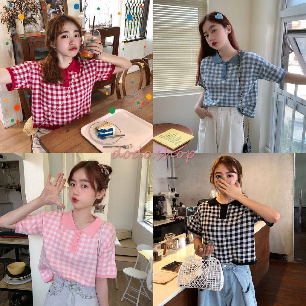 [DODO]🌟พร้อมส่ง🌟เสื้อโปโลลายสก็อตเสื้อแฟชั่นผ้าไหมพรมคอปก ลายทาง (3952-1)