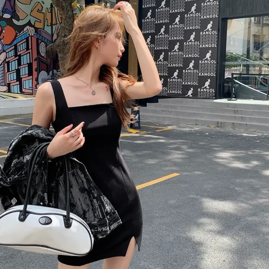 ✨Fairy style✨ ชุดเดรสแฟชั่น สีดำ รัดรูป ดีไซน์เรียบ ชุดเดรสแฟชั่น เดรสสั้นเกาหลี มินิเดรส เซ็กซี่ #DS025