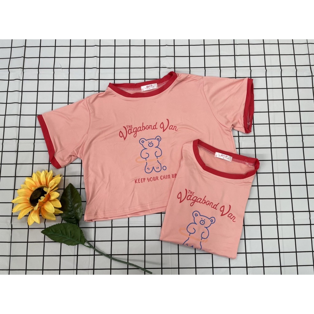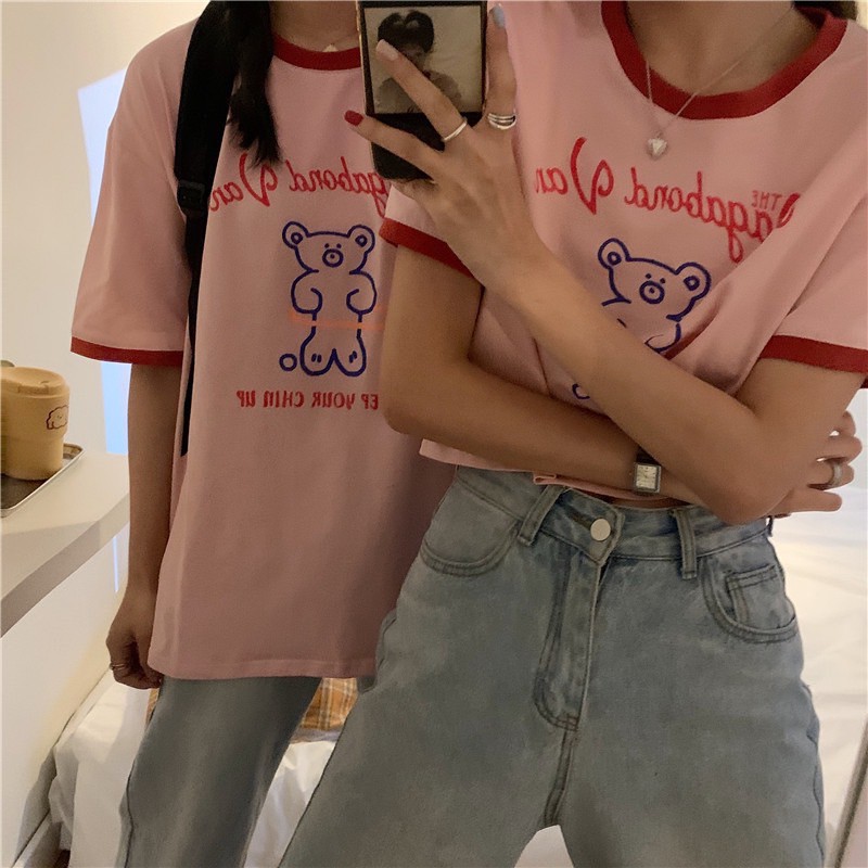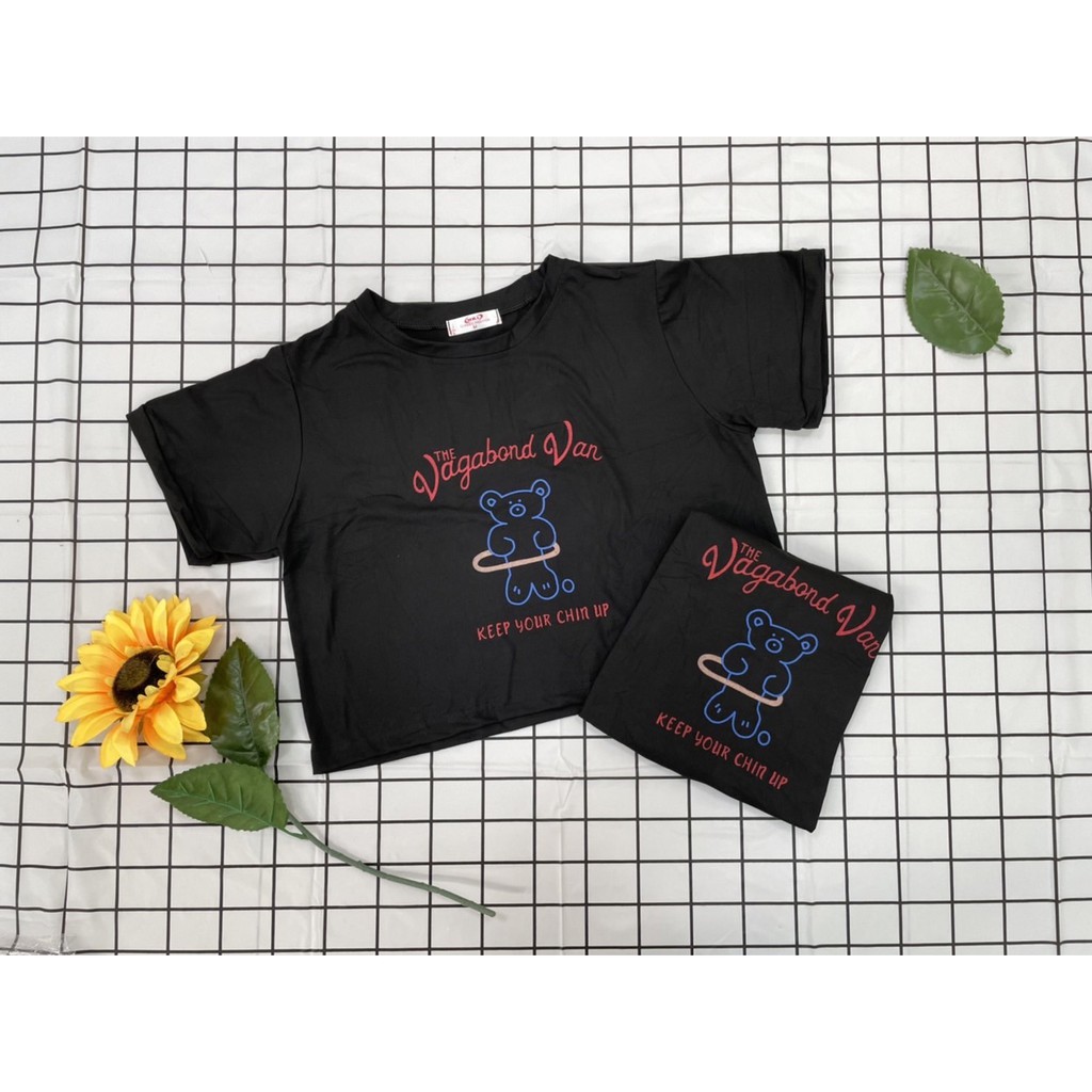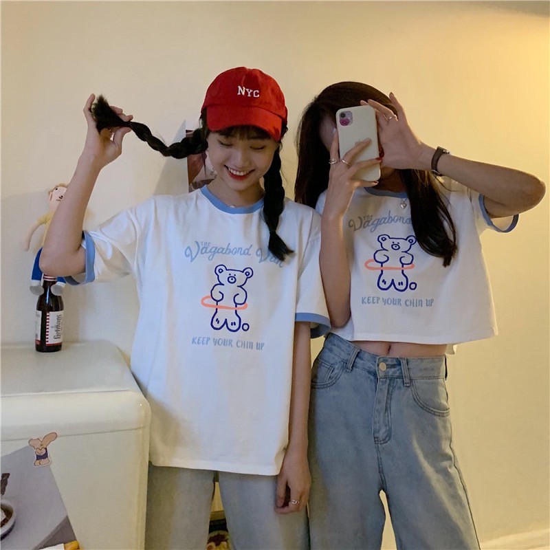 ✨Fairy style✨ เสื้อยืด พิมพ์ลายน้องหมี ครอปเอวลอทรงสวย สไตล์เกาหลี มีให้เลือก2แบบ🐼 #9350-9351
