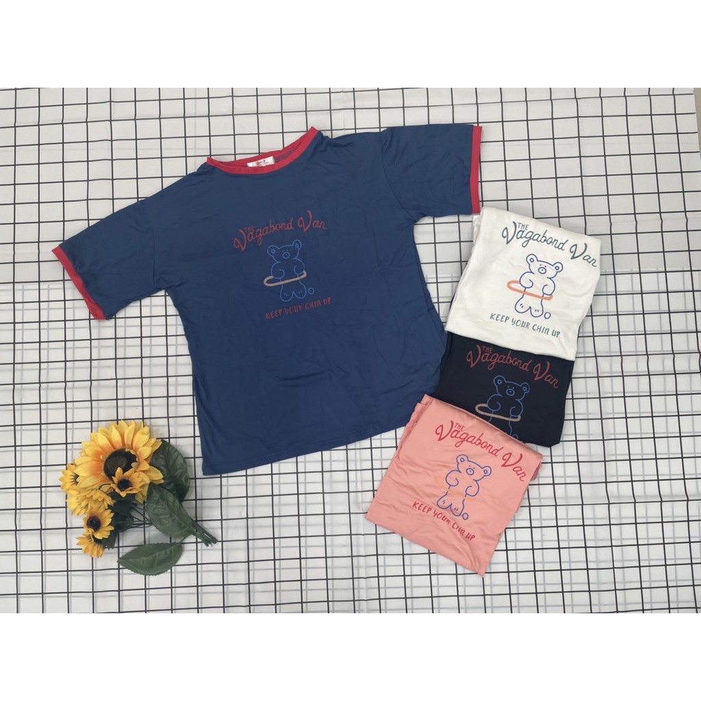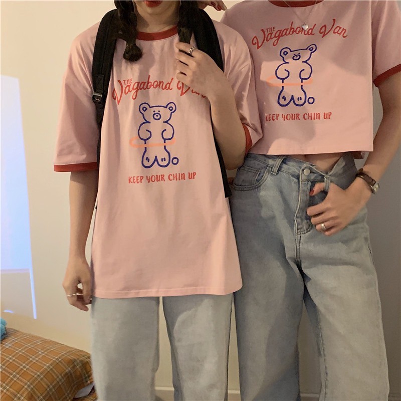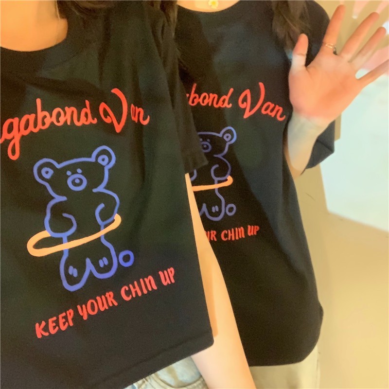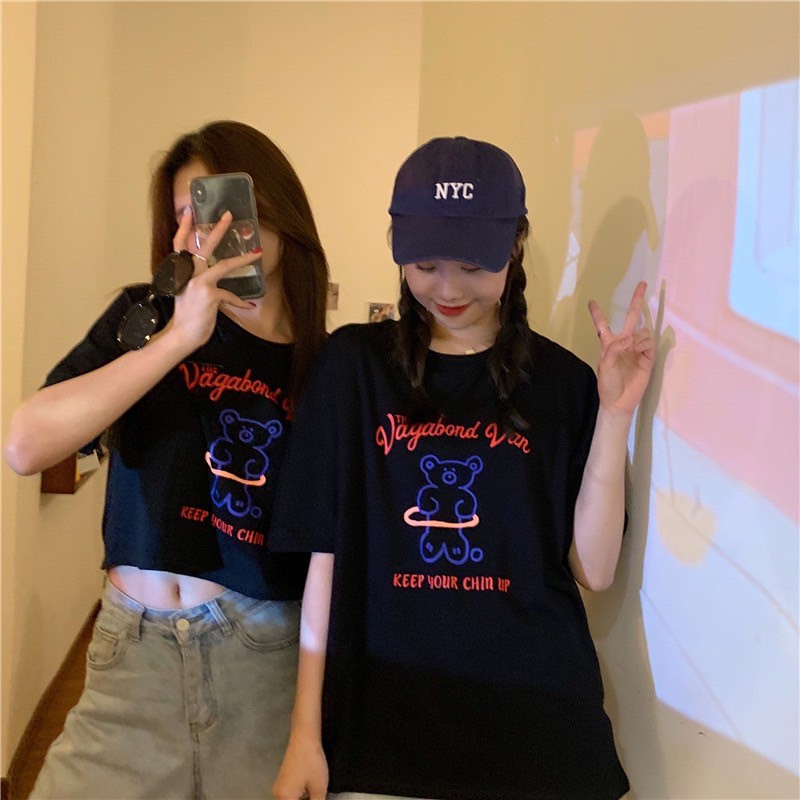 ✨Fairy style✨ เสื้อยืด พิมพ์ลายน้องหมี ครอปเอวลอทรงสวย สไตล์เกาหลี มีให้เลือก2แบบ🐼 #9350-9351