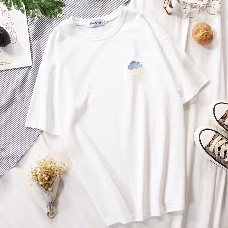 ✨Fairy style✨ เสื้อยืด แขนสั้น คอกลม แขนสั้น ลายปัก Day & Night ผ้านิ่ม ผ้าลื่น สวมใส่สบาย #9012