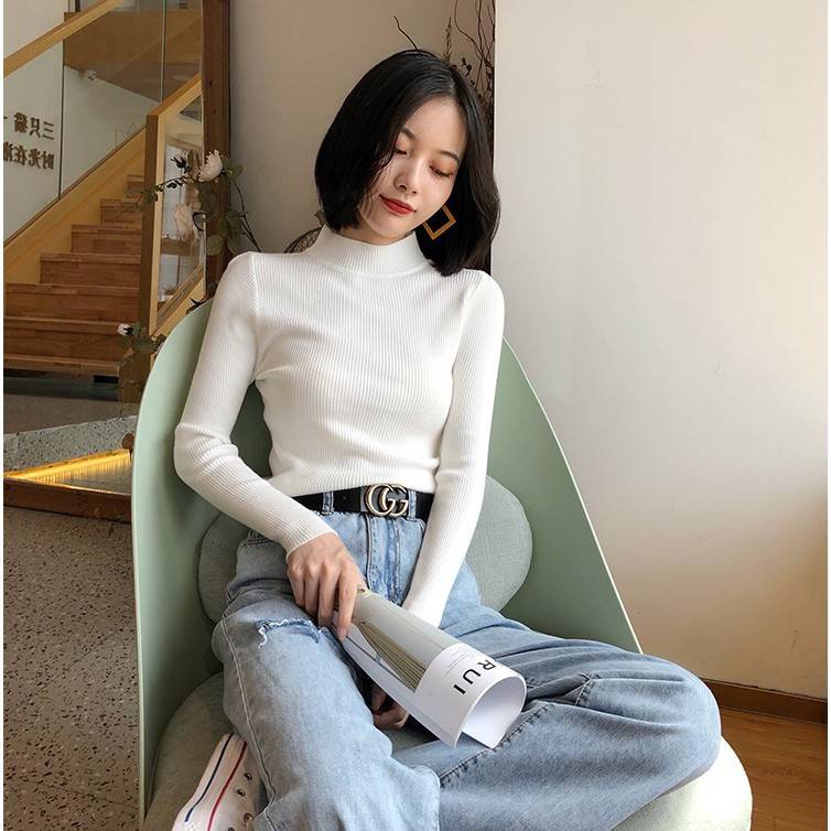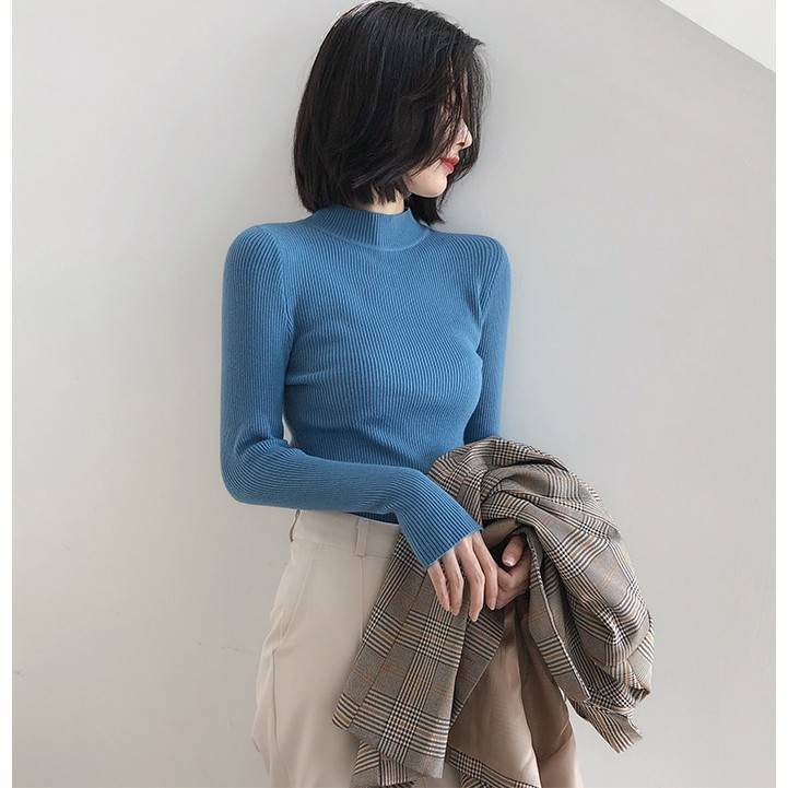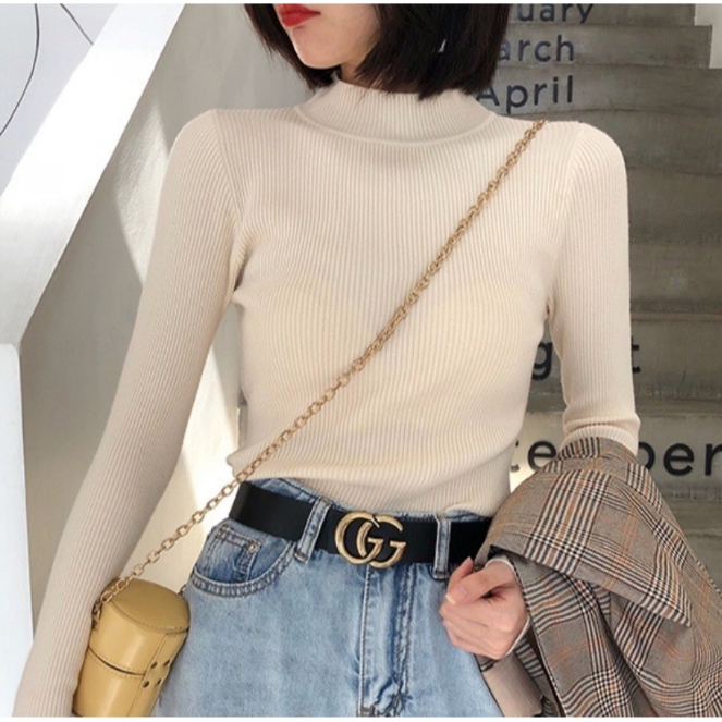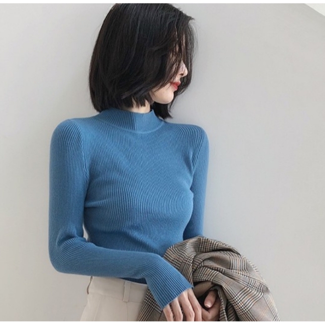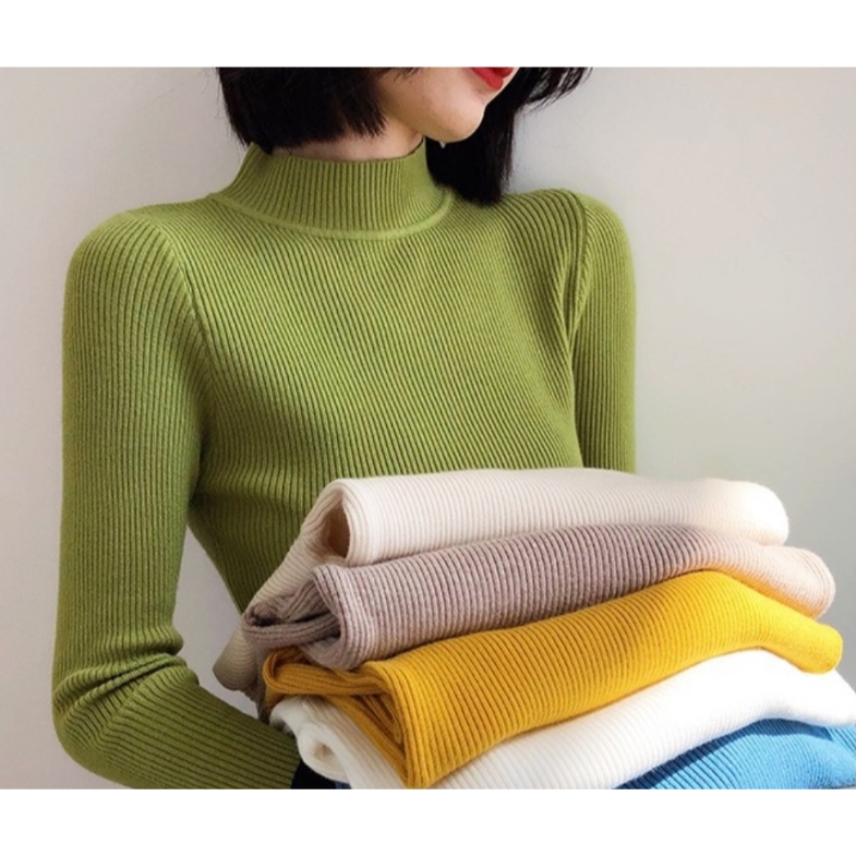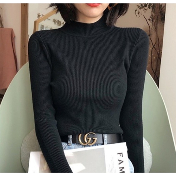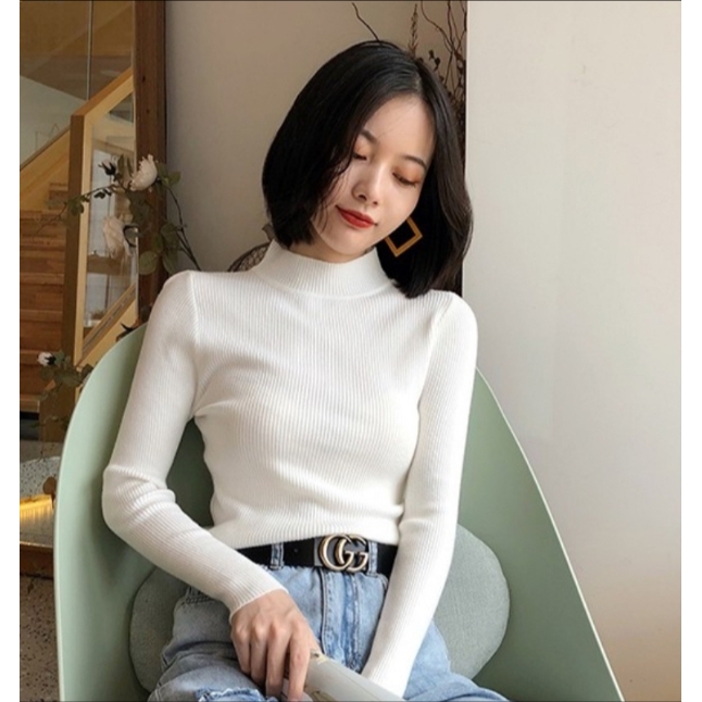 ✨Fairy Style✨พ ร้อมส่ง เสื้อไหมพรม คอเต่า แขนยาว คอปกสูง ผ้านิ่ม ใส่สบาย สไตล์เกาหลี 💗 #626