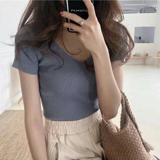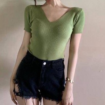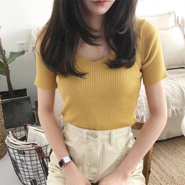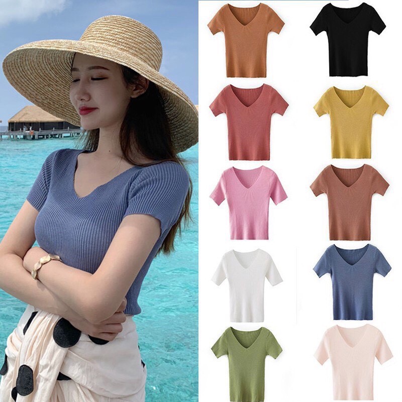 🌟Fairy style🌟 (SMENOV15)🔥พร้อมส่ง‼️🔥 Knitted V-neck เสื้อไหมพรม คอวี สีพื้น เสื้อสไตล์เกาหลี💠 #9966