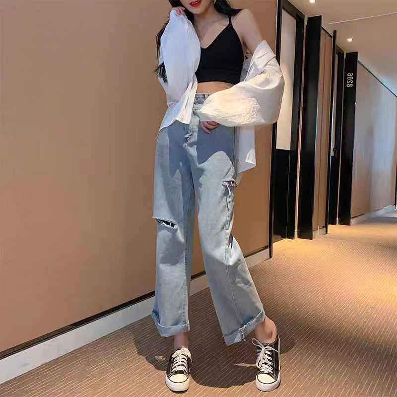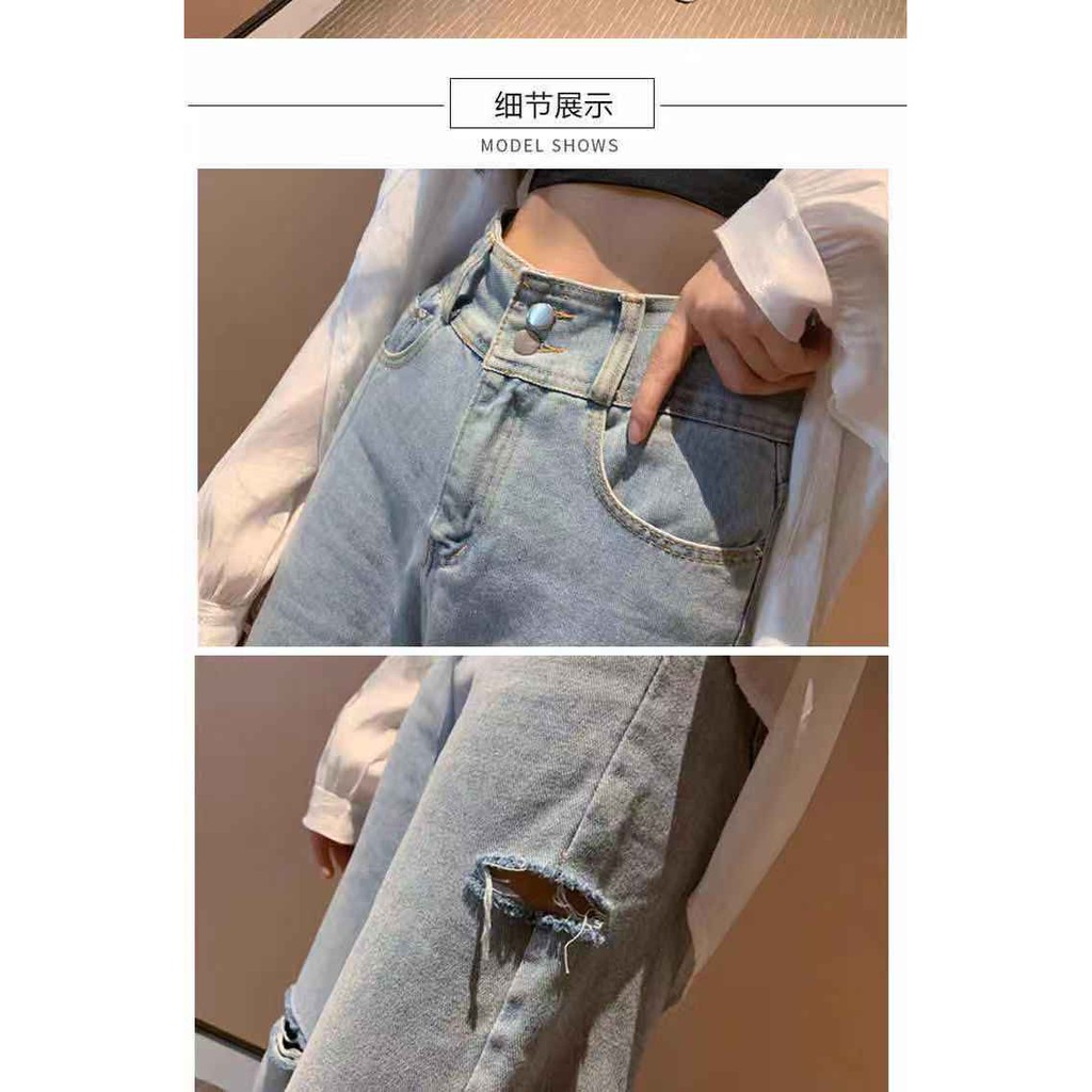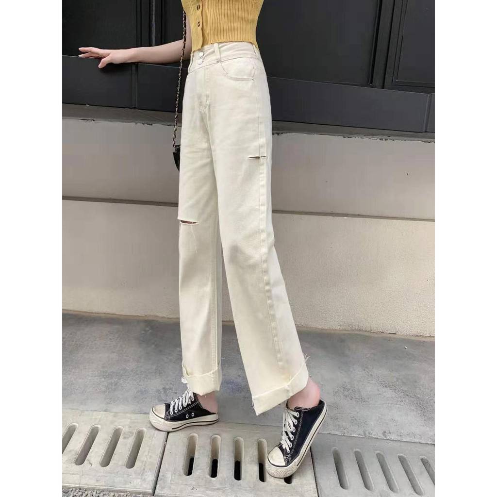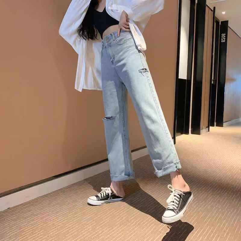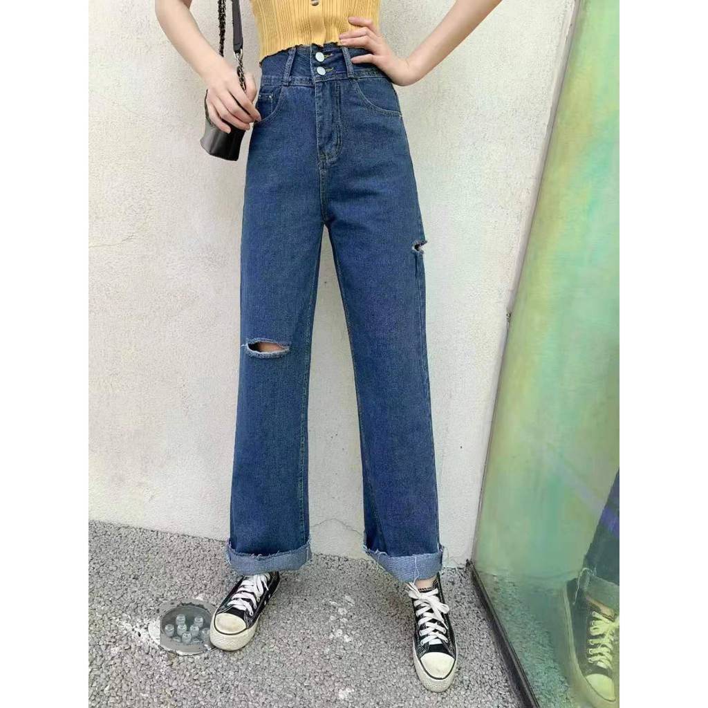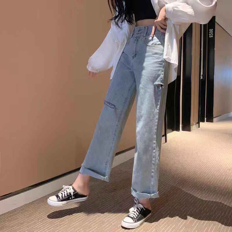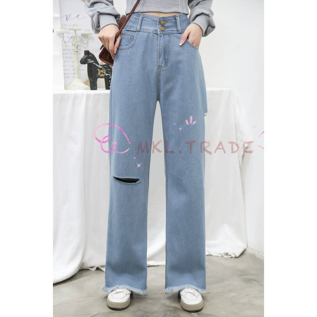 🔥 Sale 💥 พร้อมส่ง 🌟 กางเกงยีนส์ขายาว เอวสูง ขาบาน แต่งขาด ทรงสวย สไตล์เกาหลี 💕 #8012