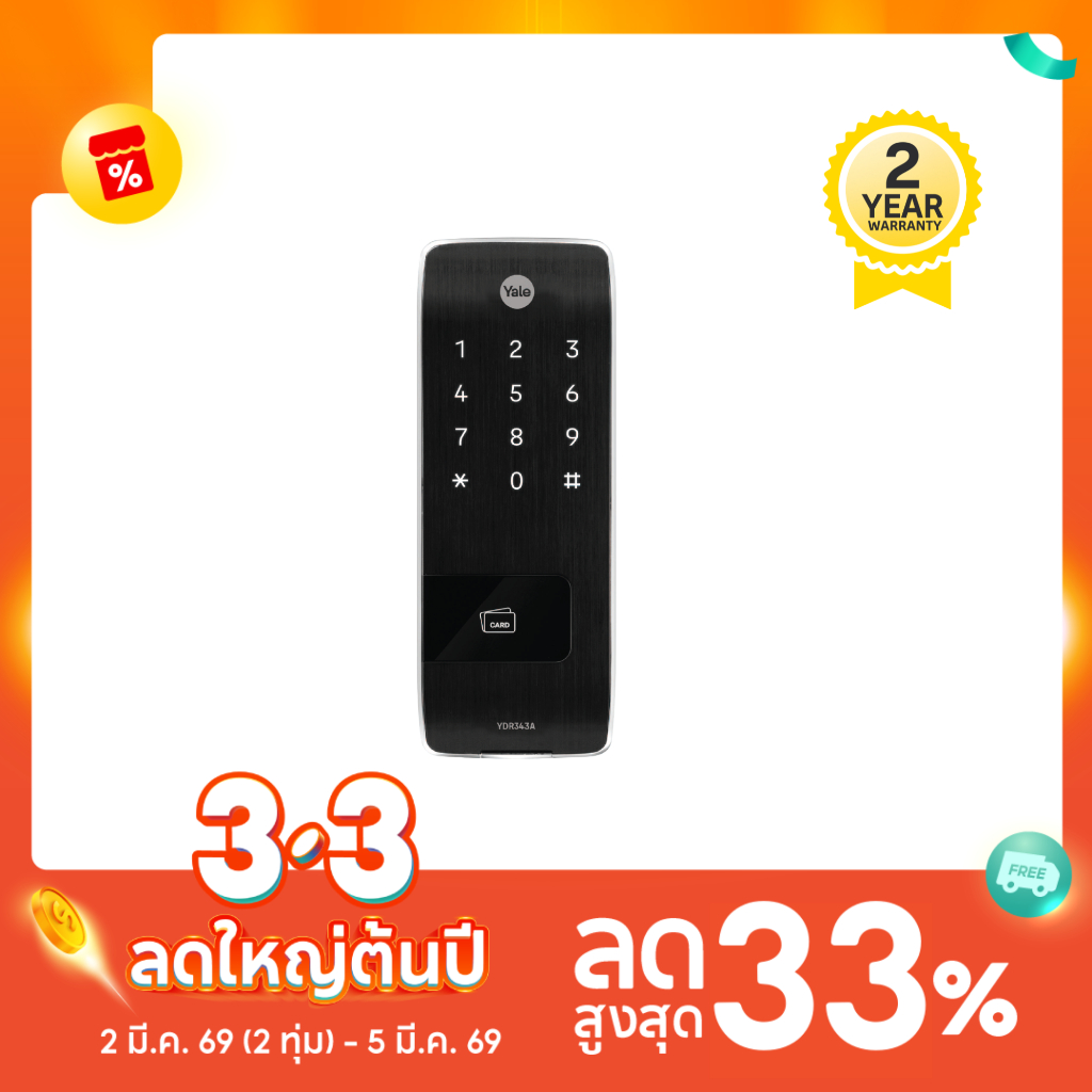 Yale YDR343A Digital Door Lock ดิจิตอลล็อคหน้าจอสัมผัส เสริมความปลอดภัย ด้านหลังแนวตั้ง
