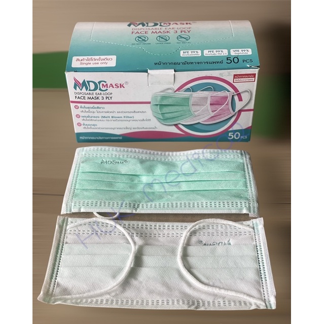 MDC mask หน้ากากอนามัยเกรดการแพทย์ มีปั้มทุกแผ่น 50ชิ้น