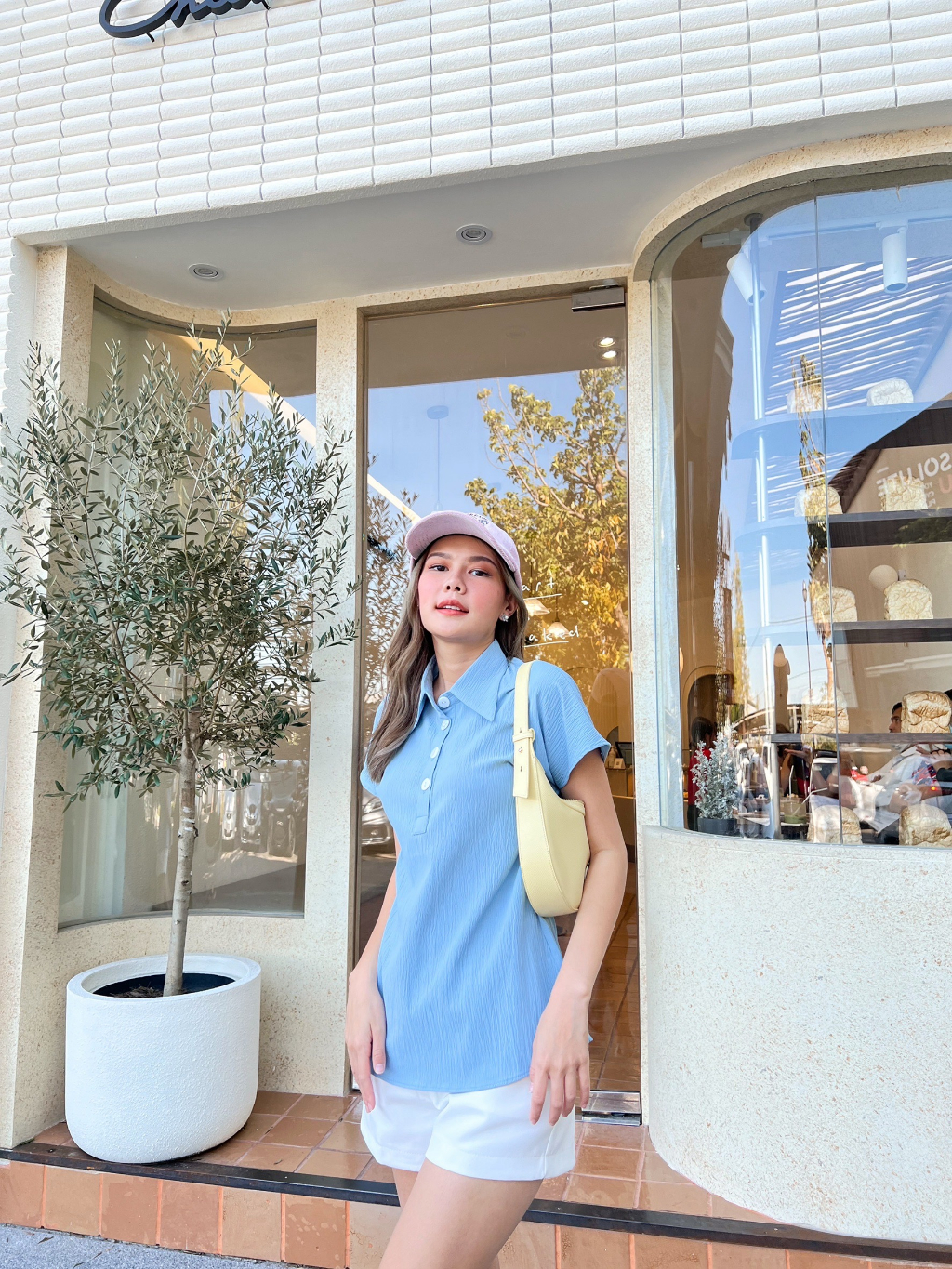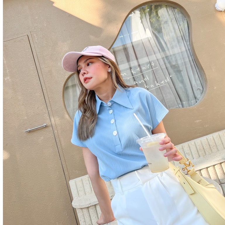 CelebrityStyle CRM16-Top เสื้อโปโลแขนล้ำเนื้อผ้าไม่หนาไม่บางใส่สบายไม่ร้อน เนื้อผ้ามี texture สวย ไม่ต้องรีด