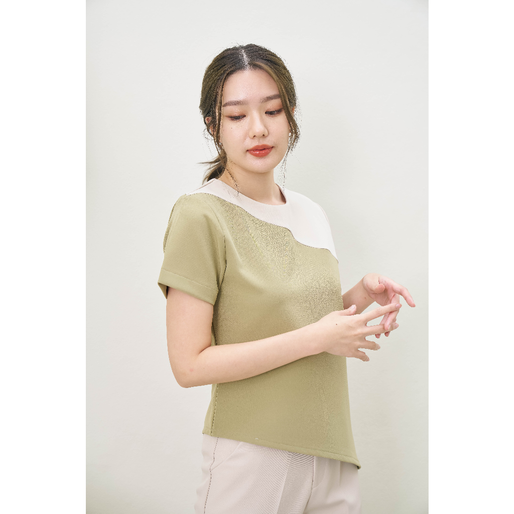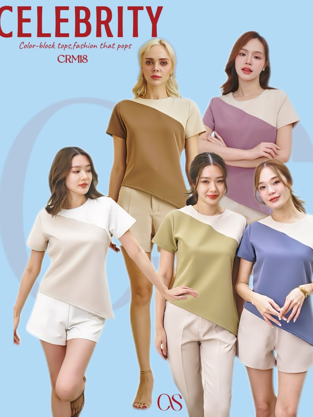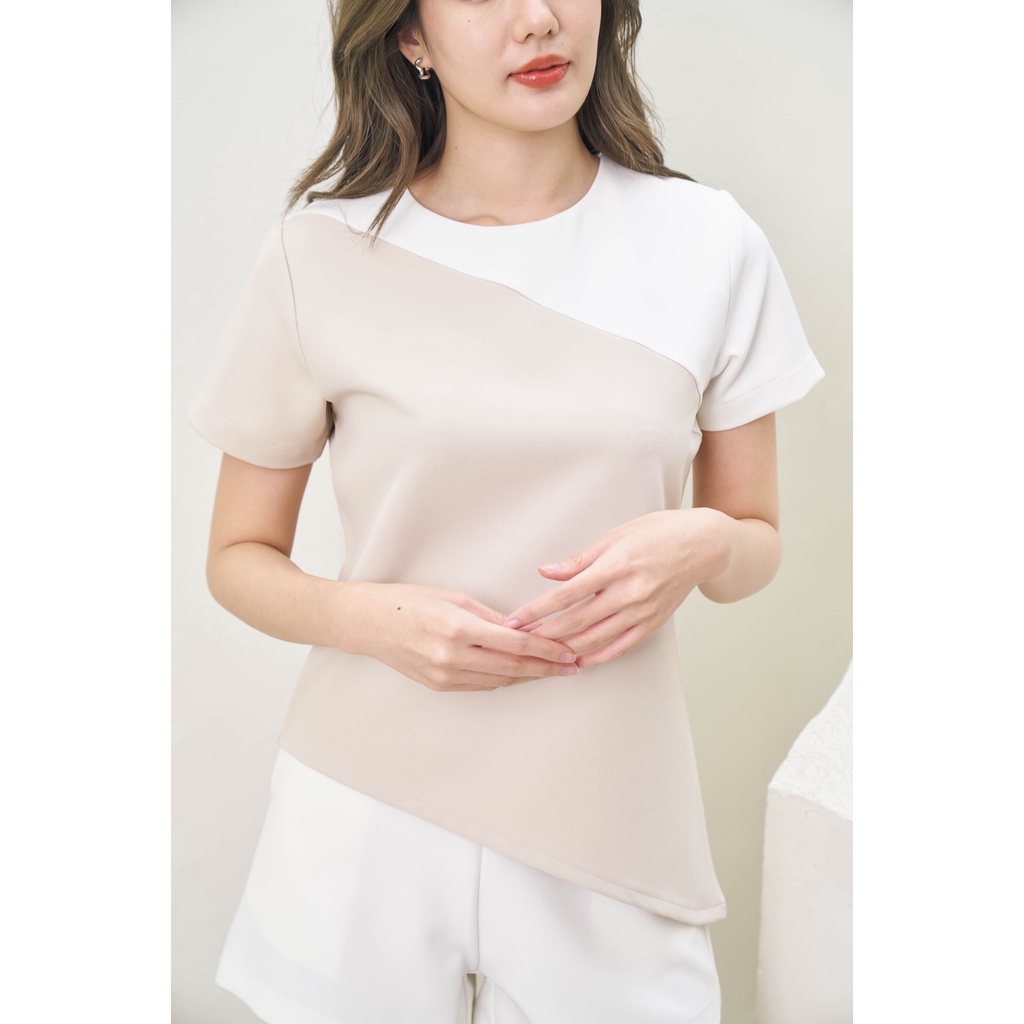CelebrityStyle CRM18-Top เสื้อตัดต่อทูโทนปลายเฉียง ผลงานออกแบบจาก CelebrityStyle®