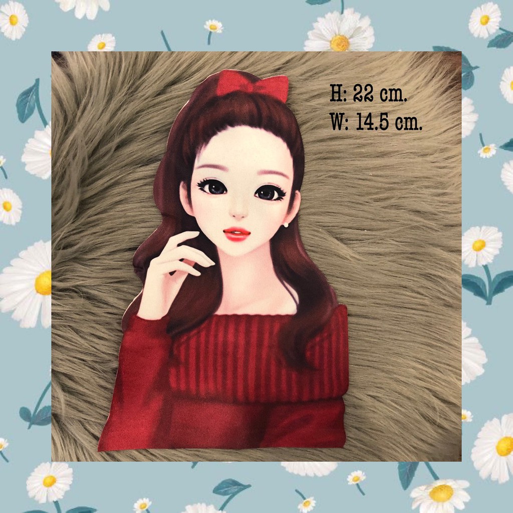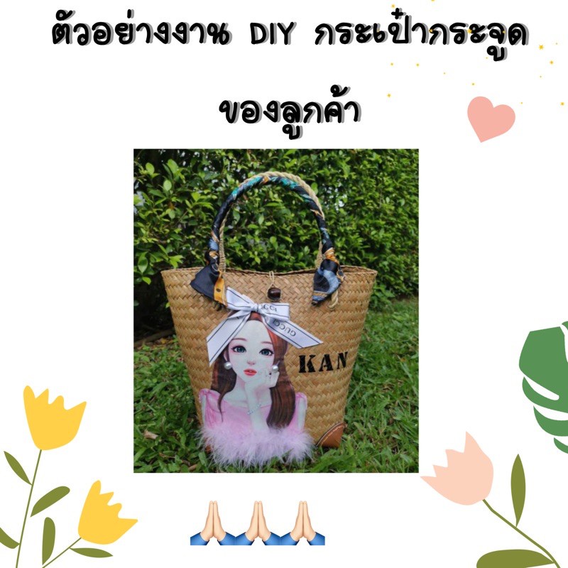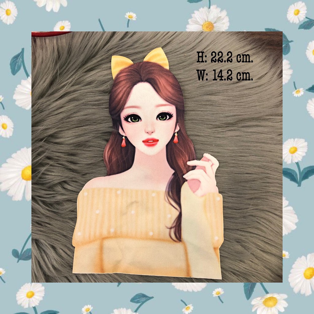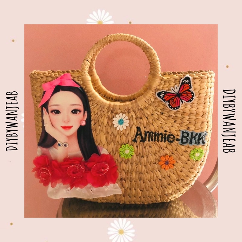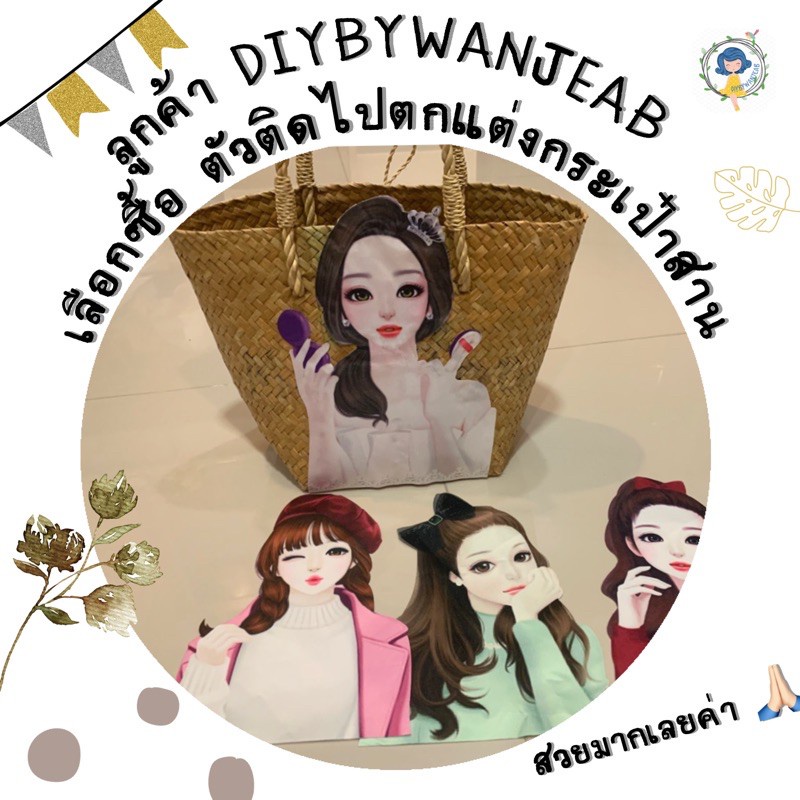 ตัวติดกระเป๋าสาน DIY ผ้าพิมพ์ลาย สำหรับติดกระเป๋าผ้า ลายหน้าผู้หญิง