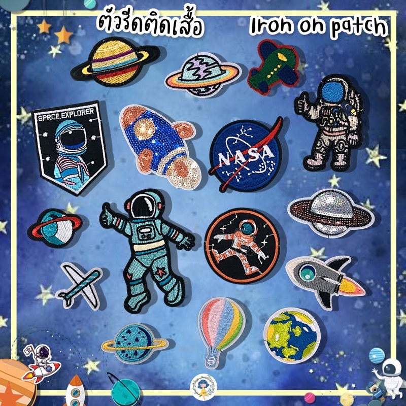 DIY ตัวรีดติดเสื้อรีด ลายอวกาศ รีดกับวัสดุที่เป็นผ้าได้หลากชนิด ติดบนอุปกรณ์นักเรียน ติดกระเป๋า งานปัก ซ่อมเสื้อ