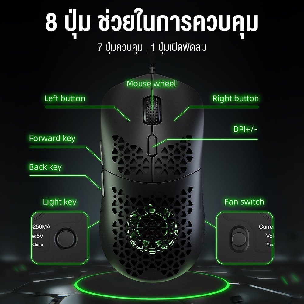 ONIKUMA FUJIN RGB Gaming Mouse เมาส์เกมมิ่ง ออฟติคอล ความแม่นยำสูงปรับ DPI 1200 - 7200 มีแสงไฟ RGB