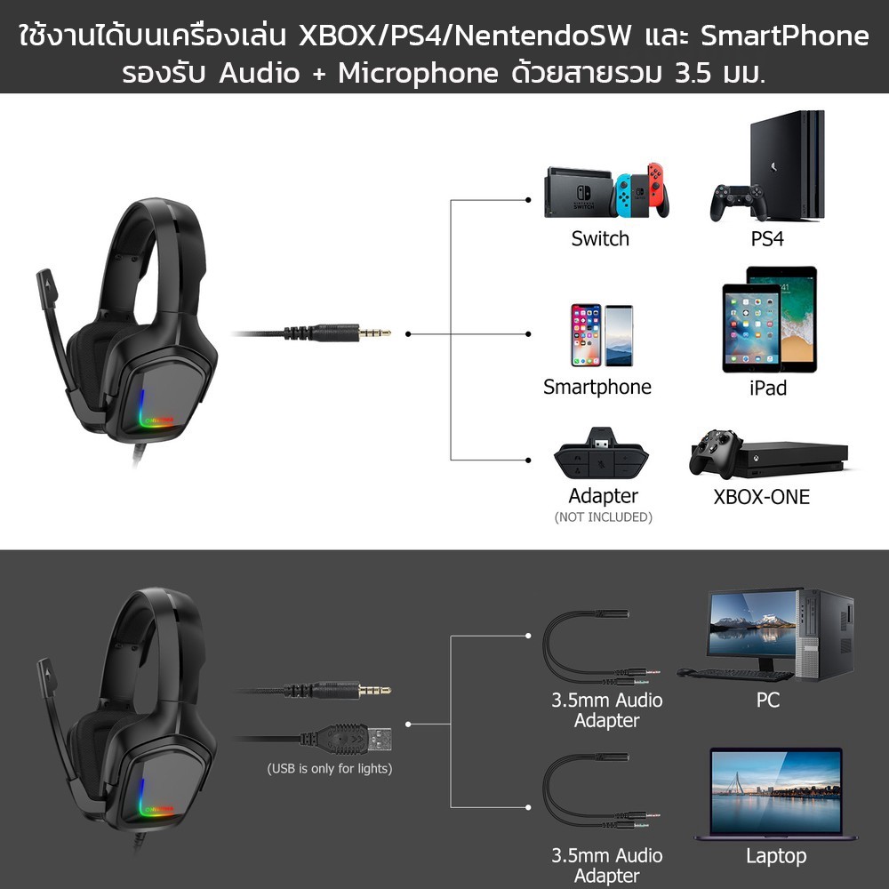 ONIKUMA K20 RGB Gaming Headset หูฟังเกมมิ่งใช้งานได้ทั้ง PC / Mobile / PS4 / XBOX / Nintendo-SW