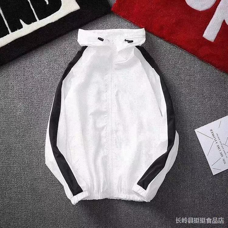 AD เสื้อคลุมแขนยาว สไตล์เกาหลี กันแดด กันลม มีฮู้ด แต่งแถบด้านข้าง (FS-1)