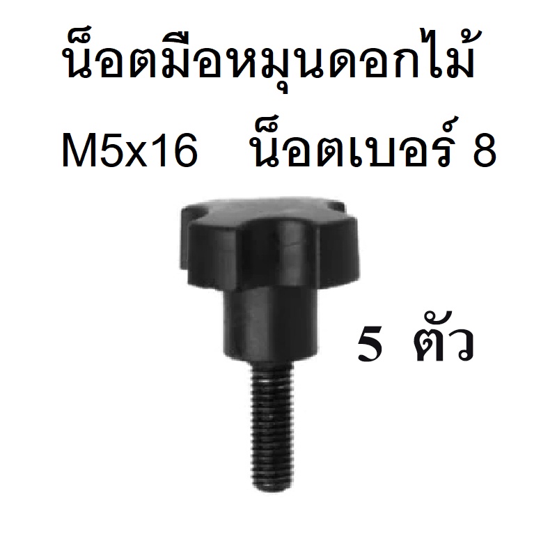 น็อตมือหมุนดอกไม้ M5 x16 ความยาว 16 มิล น็อตเบอร์ 8 สกรูมือหมุน น็อตมือหมุน Star Grip Knob Bolt