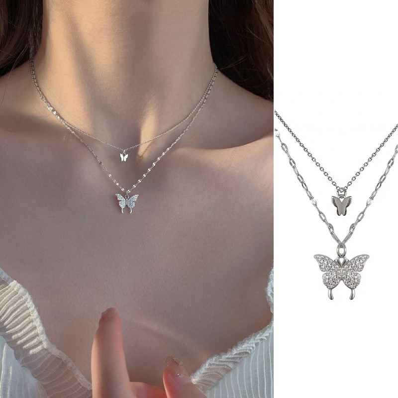 เครื่องประดับสร้อยคอโซ่จี้ผีเสื้อคู่สไตล์เกาหลีสําหรับผู้หญิง
