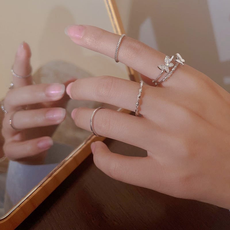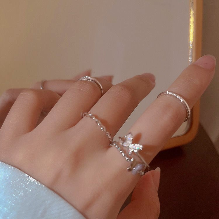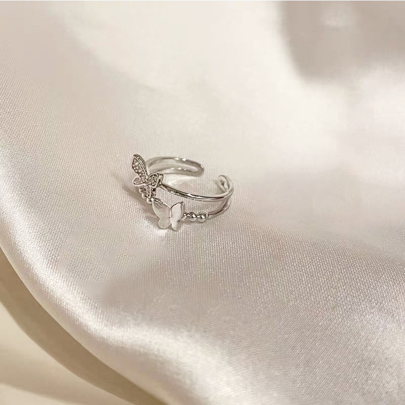 แหวน รูปผีเสื้อ สามารถปรับได้ เข้ากับทุกการแต่งกาย สไตล์เกาหลี สําหรับผู้หญิง