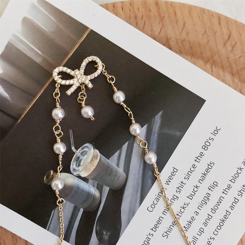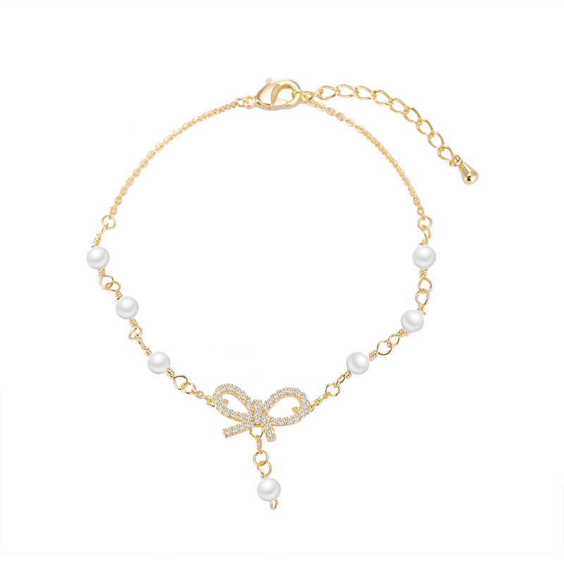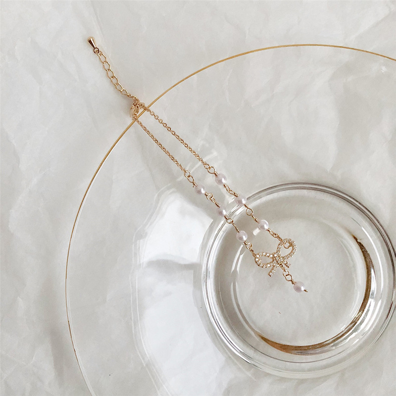 เครื่องประดับ สร้อยข้อมือ สายโซ่ ประดับโบว์ ไข่มุกคริสตัล แบบบาง คุณภาพสูง แฟชั่นสําหรับผู้หญิง