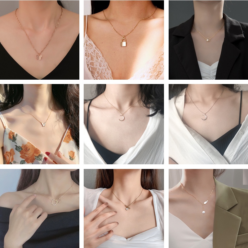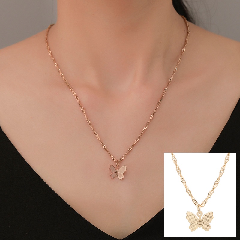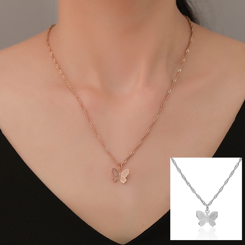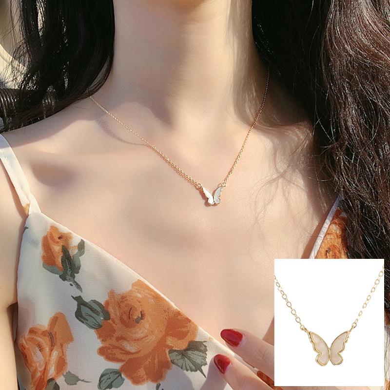 สร้อยคอโซ่ จี้ผีเสื้อ สีทอง เงิน สไตล์เกาหลี สําหรับผู้หญิง