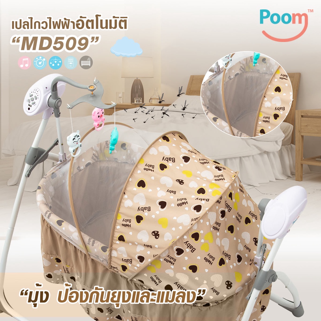 เปลไฟฟ้า Poom รุ่นใหม่ล่าสุด MD509 ดีไซน์น่ารัก พร้อมตุ๊กตาโมบาย