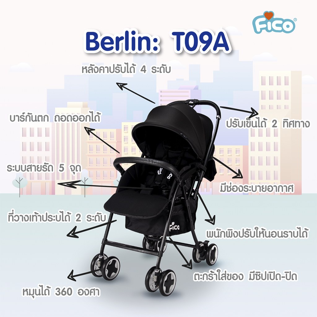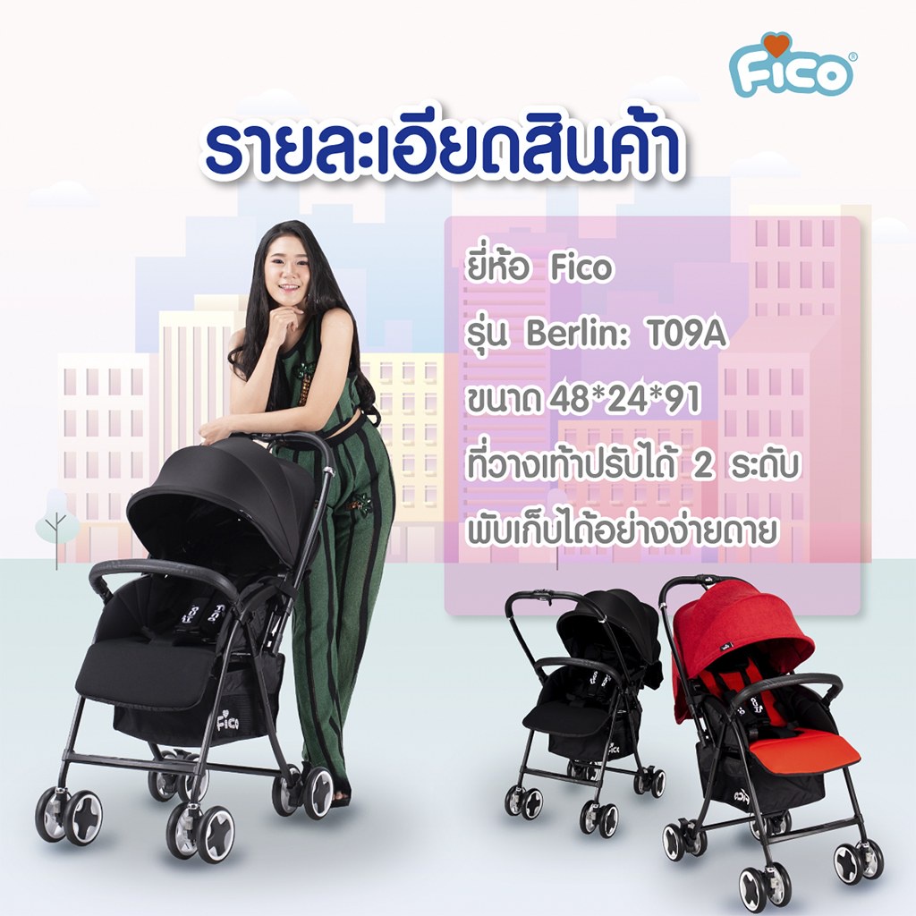 Fico รถเข็นเด็ก รุ่น Berlin: T09A เข็นได้ 2 ทิศทาง พับเก็บได้ด้วยมือเดียว ลดล้างสต็อก ราคาสุดคุ้ม