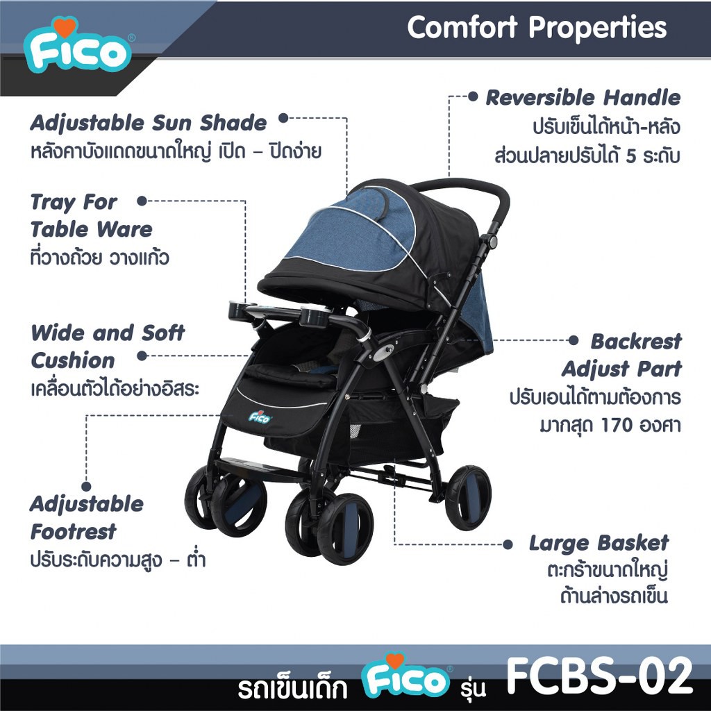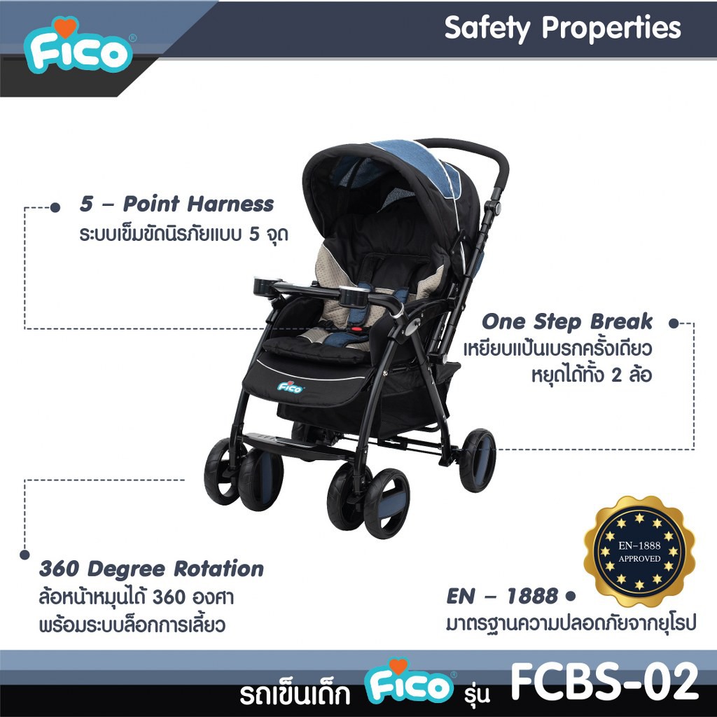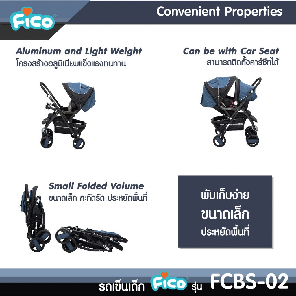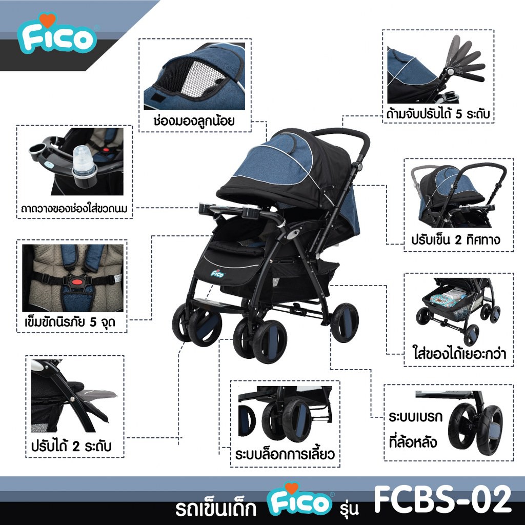 Fico รถเข็นเด็ก รุ่น FCBS-02 พร้อมคาร์ซีทกระเช้าสำหรับเด็กแรกเกิด สินค้าพร้อมส่ง