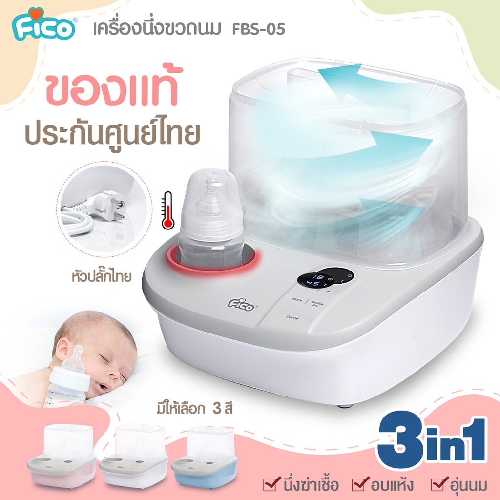 Fico เครื่องนึ่งขวดนม รุ่น FBS-05 นึ่ง อบแห้ง อุ่นนม-อาหาร เครื่องแท้ประกันศูนย์ไทย ใส่โค้ด 2022MALL815 ลดเพิ่ม10%