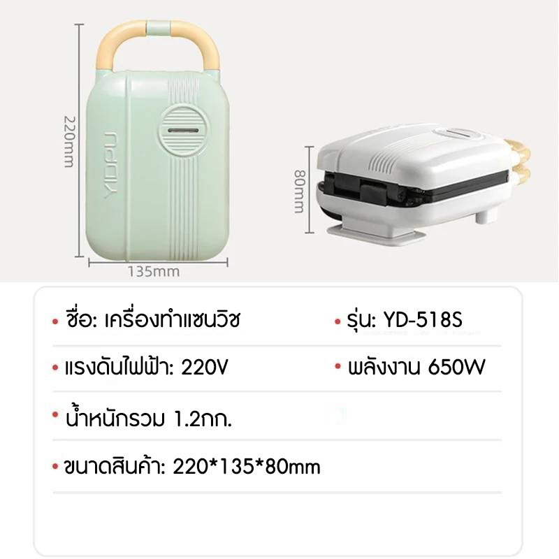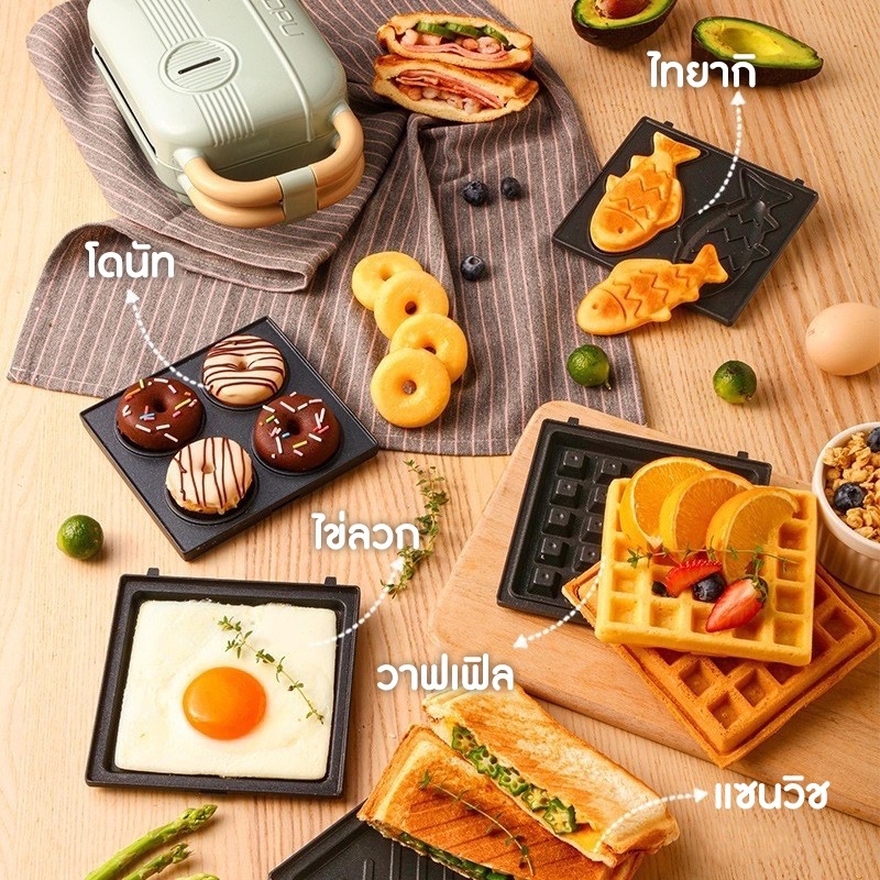 YIDPU YD-518S ชุดเครื่องทำขนม แซนวิส วาฟเฟิล ปิ้งขนมปัง พร้อมถาดเปลี่ยนถาดได้