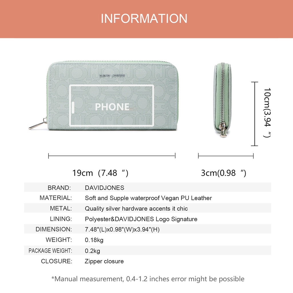 David Jones Paris กระเป๋าสตางค์หนัง สไตล์วินเทจ แ ฟชั่นสำหรับผู้หญิง