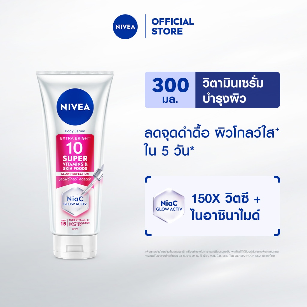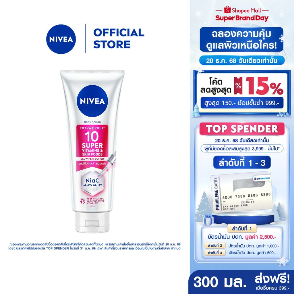 นีเวีย บอดี้ เซรั่ม เอ็กซ์ตร้า ไบรท์ 10 ซูเปอร์ วิตามิน แอนด์ สกิน ฟู้ด โกลว์ เพอร์เฟคชั่น 300 มล.NIVEA