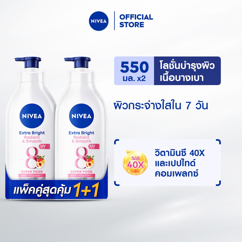 นีเวีย เอ็กซ์ตร้า ไบรท์ เรเดียนท์ แอนด์ สมูท บอดี้ โลชั่น 550 มล. 2 ชิ้น โลชั่นผิวใส NIVEA
