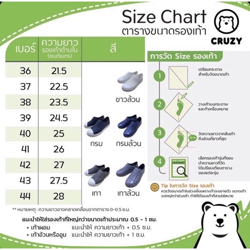 ลด65บาท(ใส่โค้ด CRUZ9Y) สีขาวขายดีสุด รองเท้า Cruzy , พร้อมส่งทันทีทุกสีทุกเบอร์