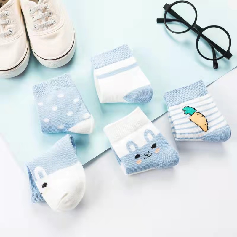 พร้อมส่ง🧦ยกแพ็ค5คู่ ถุงเท้าเด็กทารก ถุงเท้าเด็กอ่อน สำหรับเด็กแรกเกิดถึง 4 ขวบ ถุงเท้าเด็กลายการ์ตูน เนื้อผ้านุ่ม