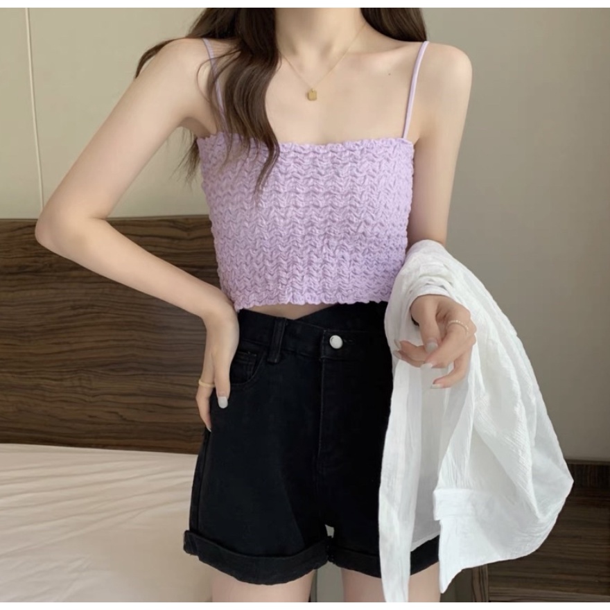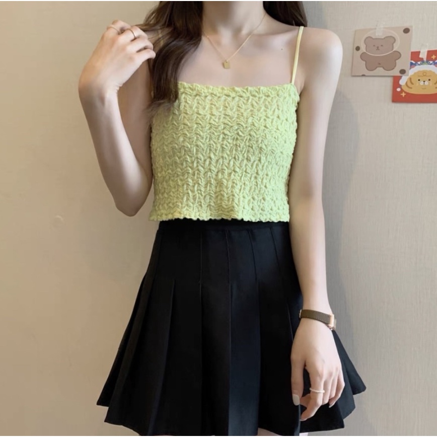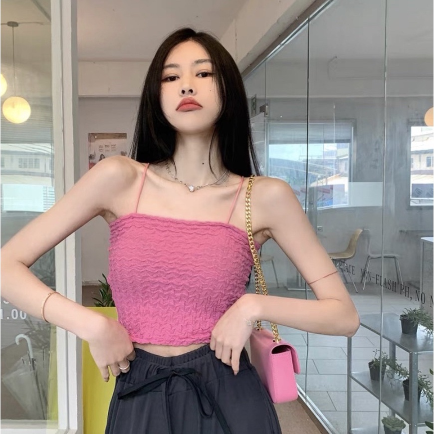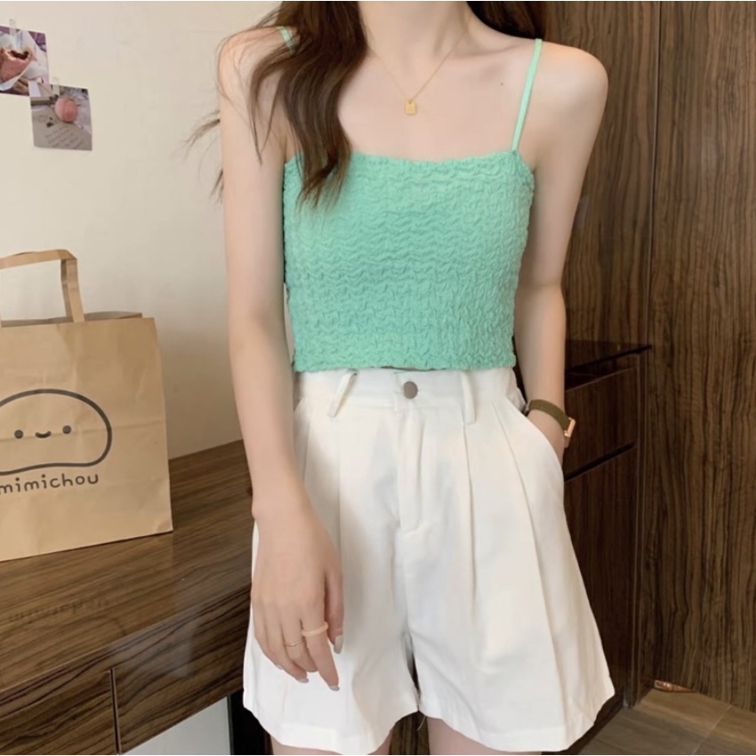 diary(32081)สายเดี่ยวผ้าย่น เสื้อสายเดี่ยวสีซัมเมอร์ ผ้านิ่มใส่สบาย