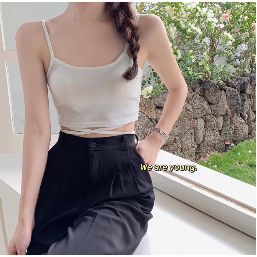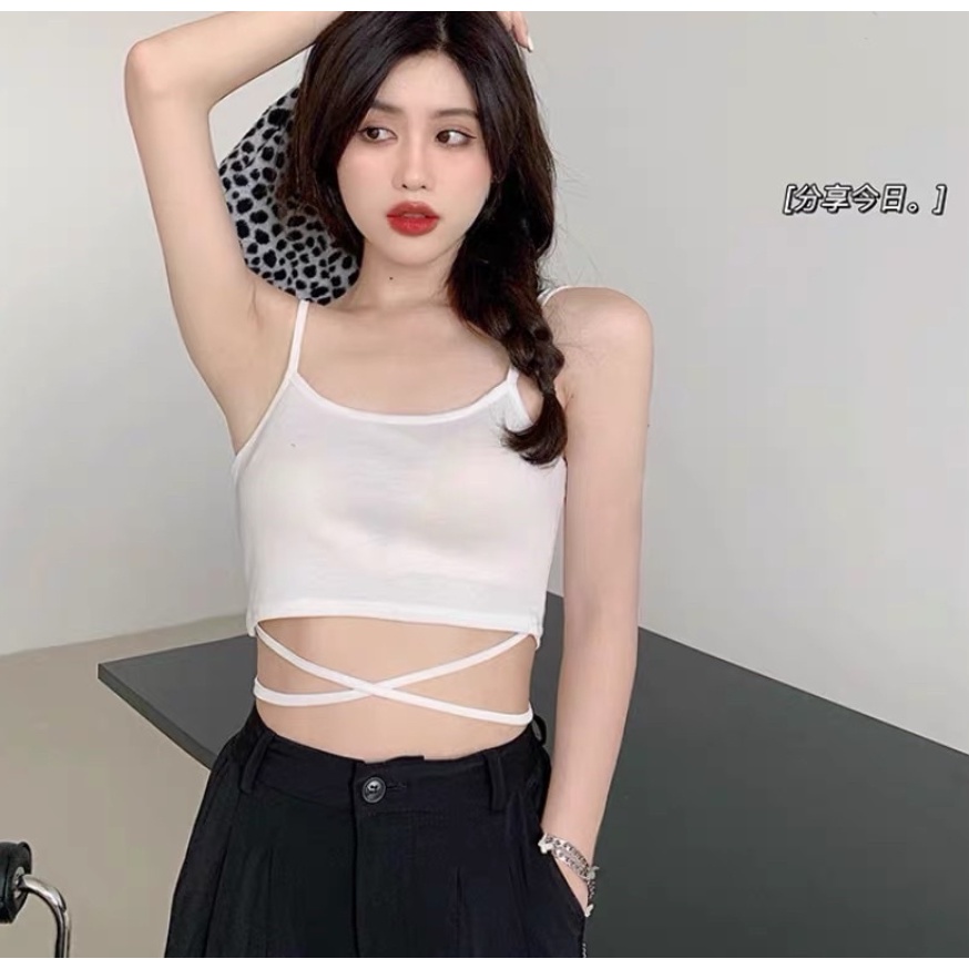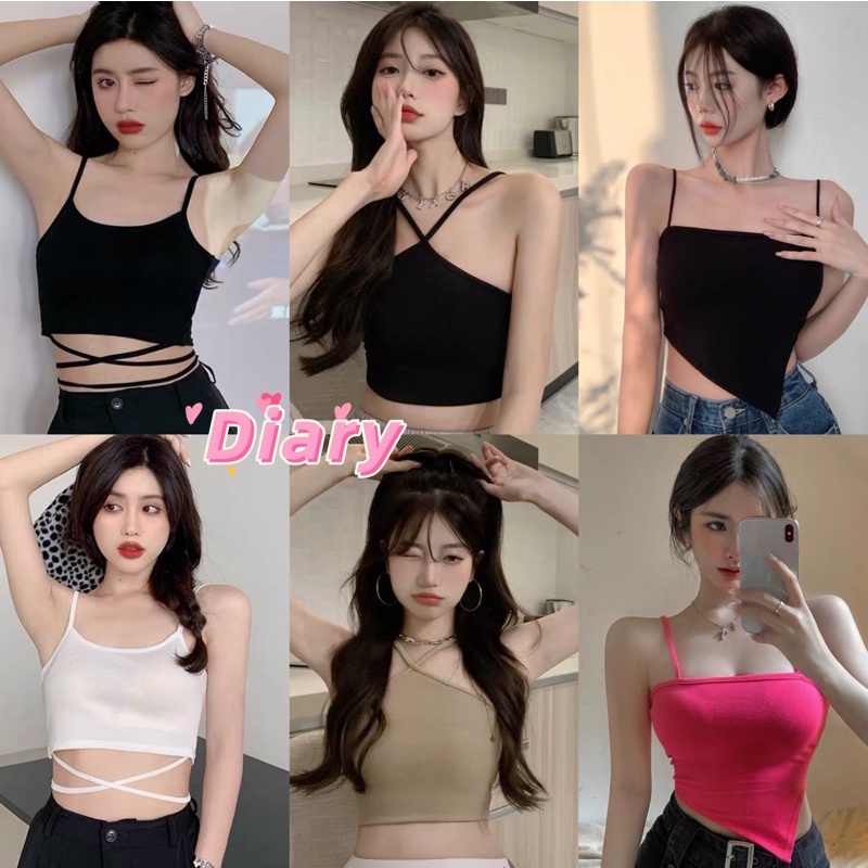 diary(B029/B027/B025)ครอปสายเดี่ยวผูกเอว สายเดี่ยวพร้อมสายไขว้ผูกเอว สุดเก๋ มินิครอป ราคาถูก