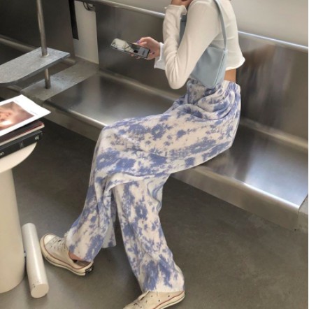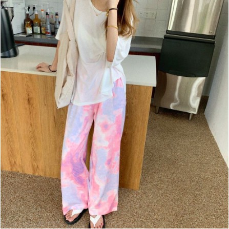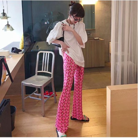 Diary พร้อมส่ง*กางเกงขายาวเอวสูงเอวสม็อตลายมัดย้อมลายหัวใจน่ารักแฟชั่นสุดฮิตNO.GGY