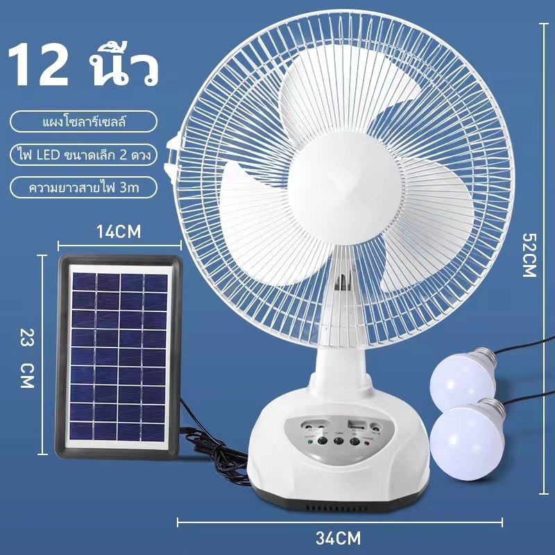 พัดลมโซล่าเซลล์12 นิ้ว พัดลมพกพา มีแบตเตอรี่ในตัว พัดลมตั้งพื้น ใช้งานกับไฟฟ้าได้-พร้อมส่งที่ไทย