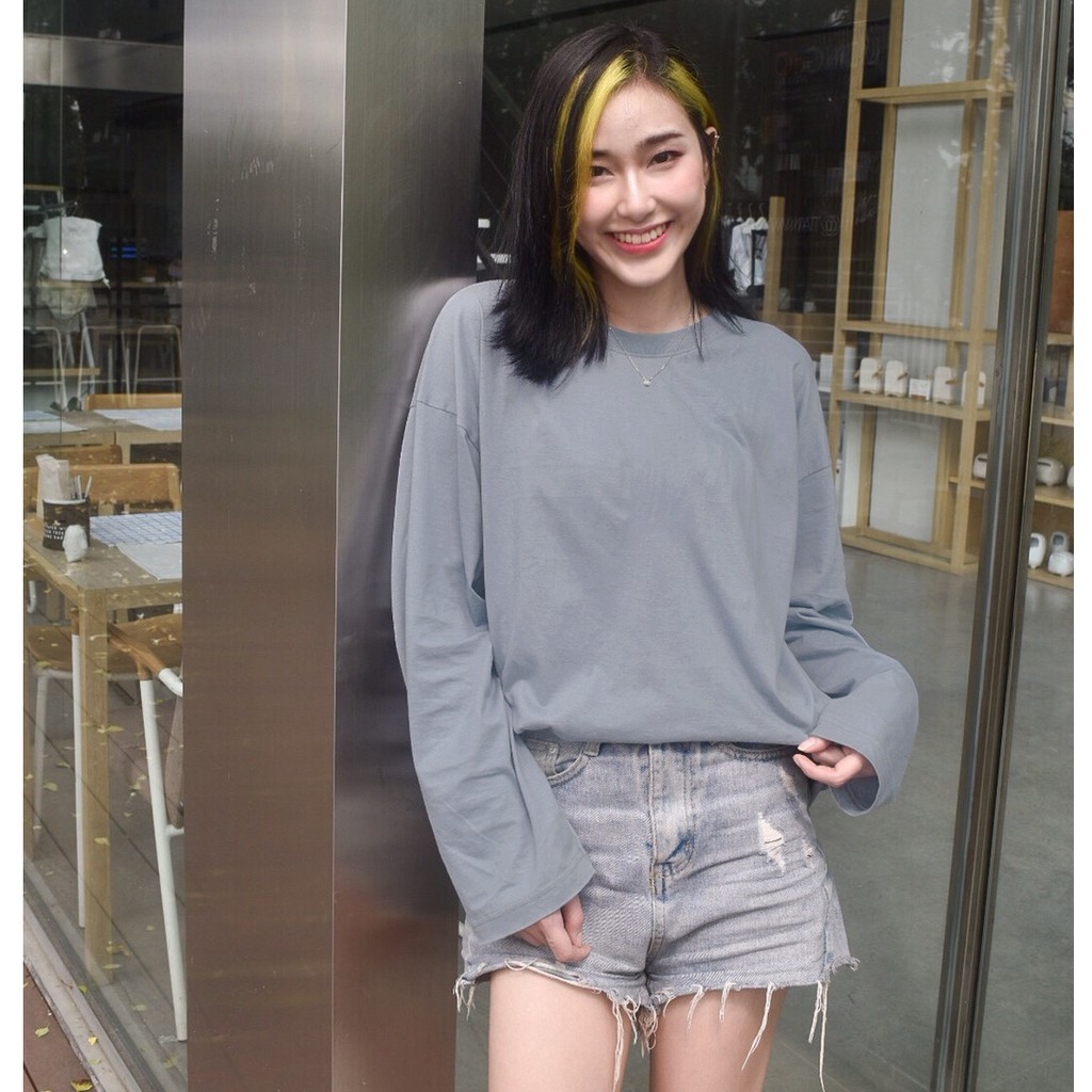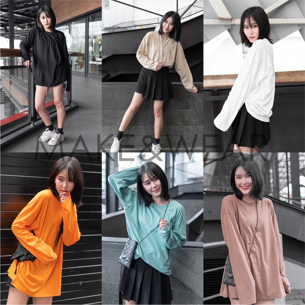 งานไทย ทรงสวย พร้อมส่ง 🌟เสื้อแขนยาว เสื้อแขนยาวโอเวอร์ไซส์ สีพื้น 7 สี 💥📸 ภาพถ่ายจากสินค้าจริงทุกตัว