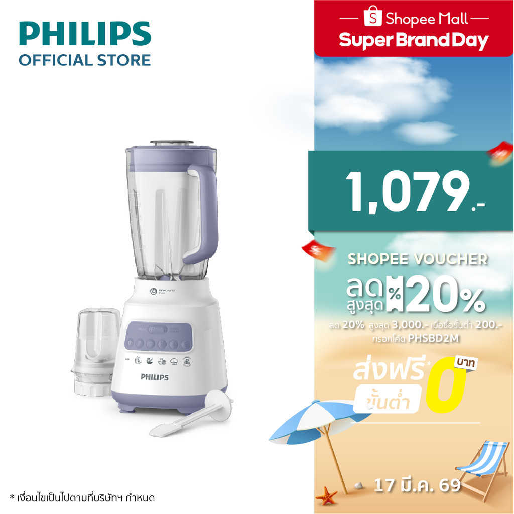 Philips HR2221 เครื่องปั่น Blender 2L ProBlend - 40% Finer, Ice Crushing, 2x Faster 700w รับประกัน 2 ปี